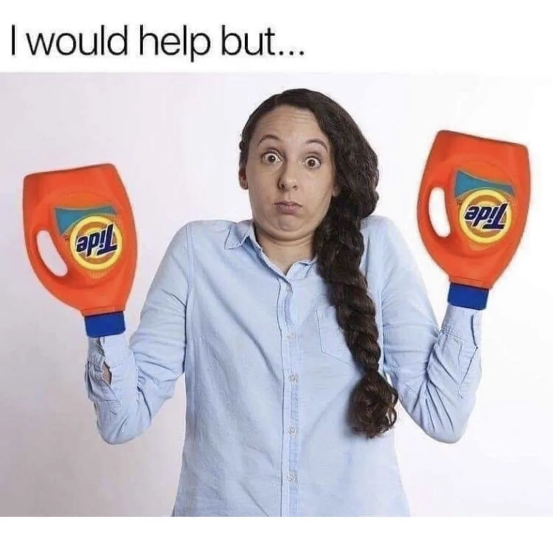 7)Tide音似tied,I would help but my hands are Tided (tied):我想帮忙但我的手被捆住了;