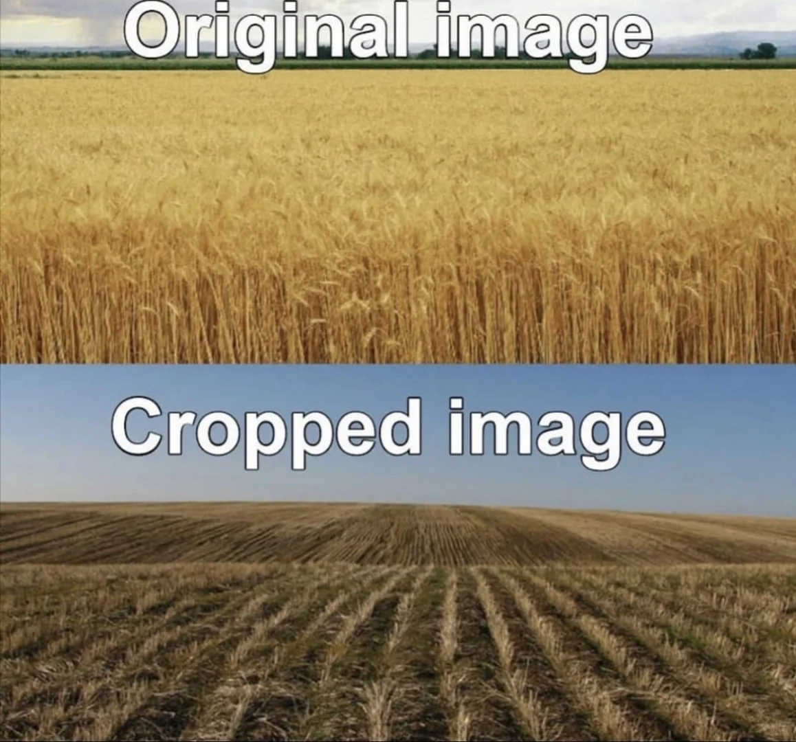 8)cropped image “裁剪图” 双关为“庄稼收割图”;