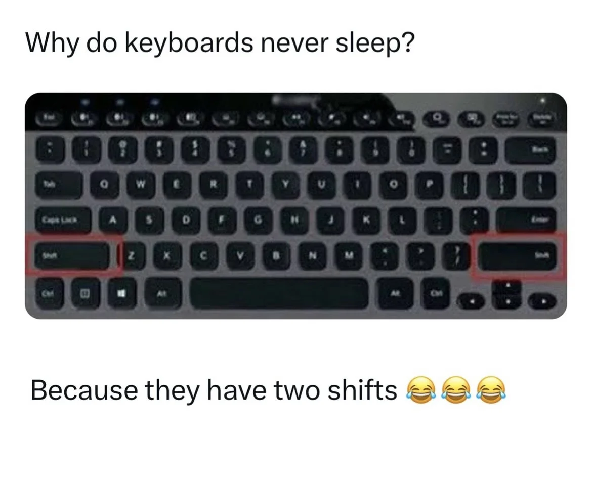 3)键盘不睡觉是因为它们有两个班次(shifts)/shift键;