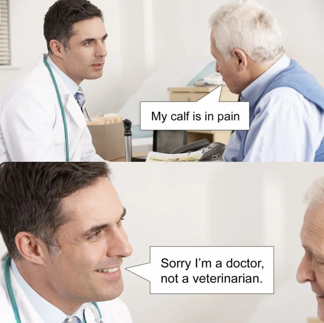 14)calf 小腿,双关为‘小牛’,所以医生说他不是兽医;