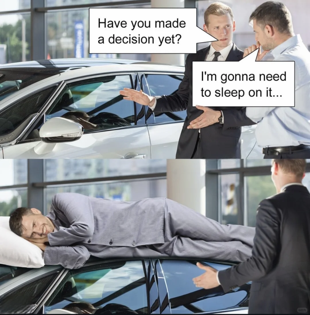 6)sleep on it指“好好考虑一下”,他觉得是“睡在车上”;