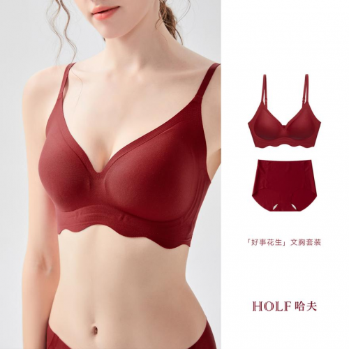 「好事花生」文胸的每一处都经得起推敲。面料的柔软触感,得益于品牌专属的创新科技纱线,轻轻柔柔地包裹身体。一片式的剪裁设计和点胶粘合工艺,让穿着体验更接近无感。3D立体锁胸,胸部更突显立体饱满,牵引力稳稳地向上承托。与此同时,哈夫HOLF洞察新生代女性的个性化需求,在肩带上推出纯色款和字母款,满足用户的不同审美选择。