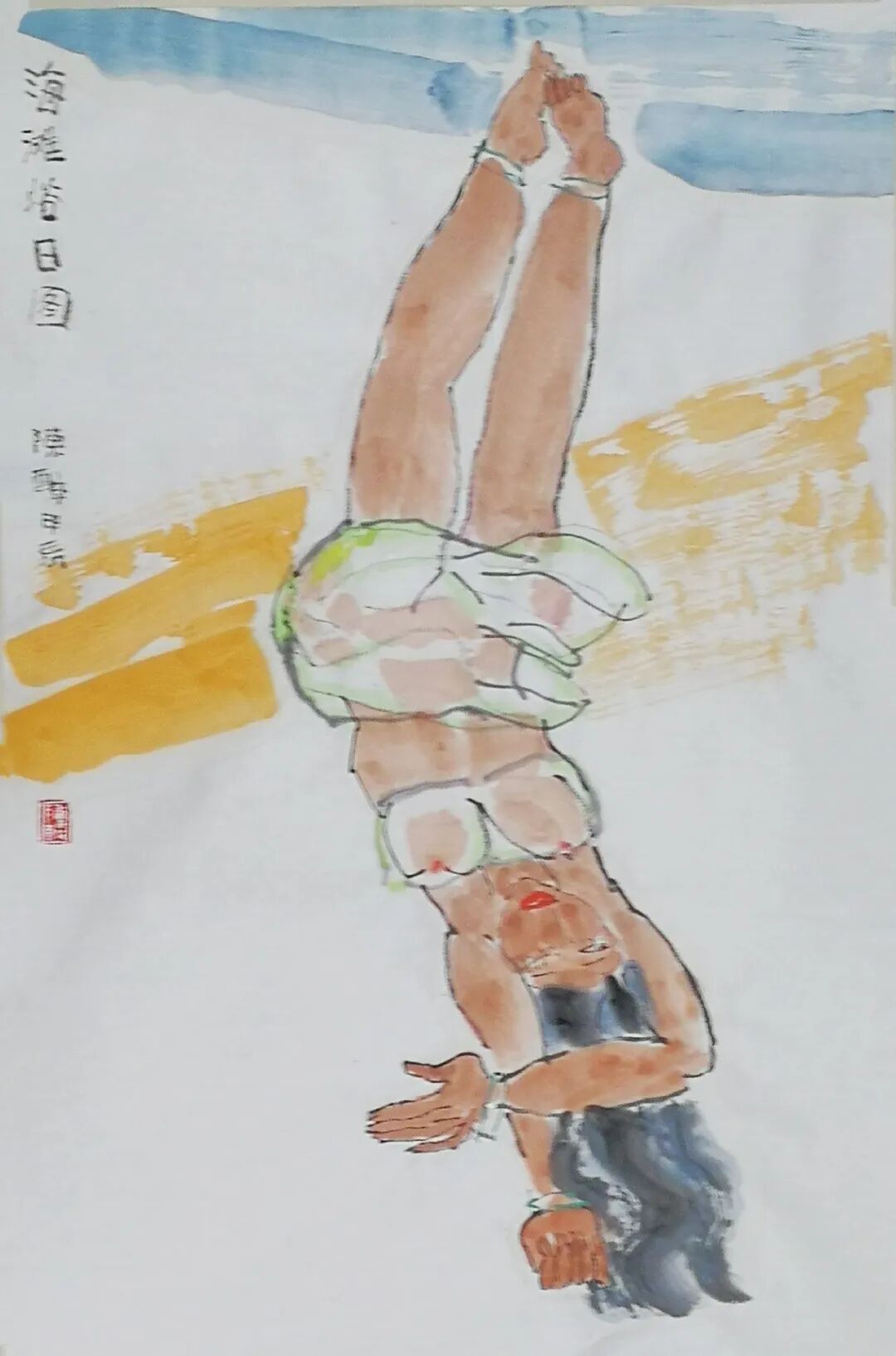 陈醉 海滩浴日图 2024年68×46cm