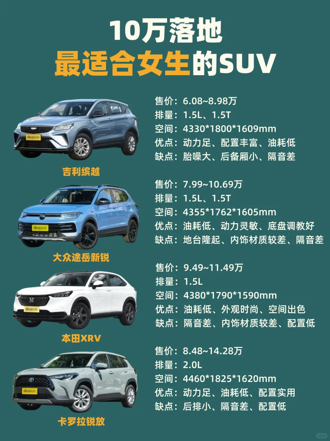 🤔10万落地,适合女生开的SUV怎么选?今天小编就给大家推荐4款车,小巧、省油、耐用,大家买车的时候可以考虑下👇🏻👇🏻👇🏻