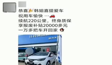 近日,韩先生向媒体反映,他在徐州某4S店花费3万余元购买了一辆江铃小麒麟新能源汽车。提车时,4S店工作人员在朋友圈发布动态,明确标注“恭喜喜提爱车,终身质保”字样,韩先生随即截图留存。