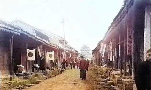 在照片中,只见运城城内道路两旁的房屋上挂满了日本的国旗,街道上很少有人在路上行走,大家对着一切感到十分畏惧,整座城市都带有萧瑟和萧瑟之感,百姓们躲到了家中,只有一些日本人还在街道上巡逻。