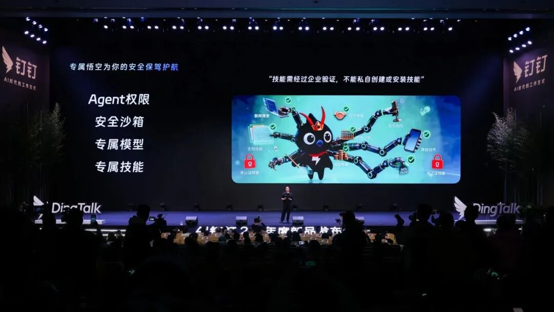 “过去是人用钉钉来工作,未来是 AI 用钉钉来工作。和市面上所有的龙虾 Agent 不一样,悟空天然就长在企业组织中,可以在真实的企业环境中安全使用。”陈航表示。