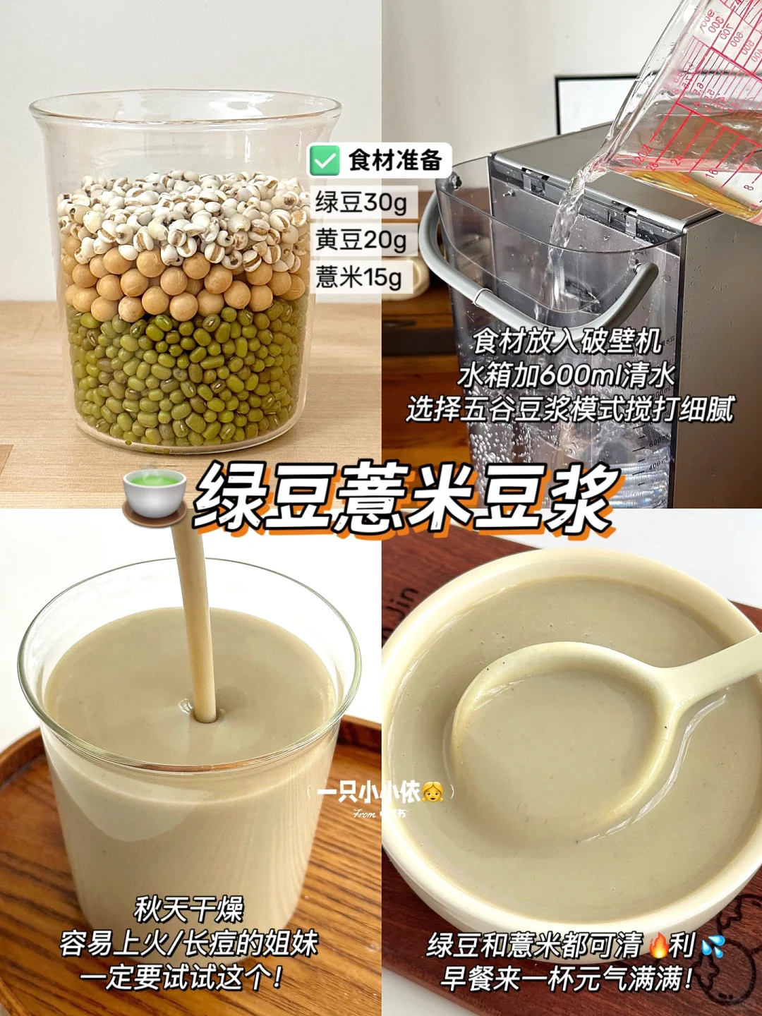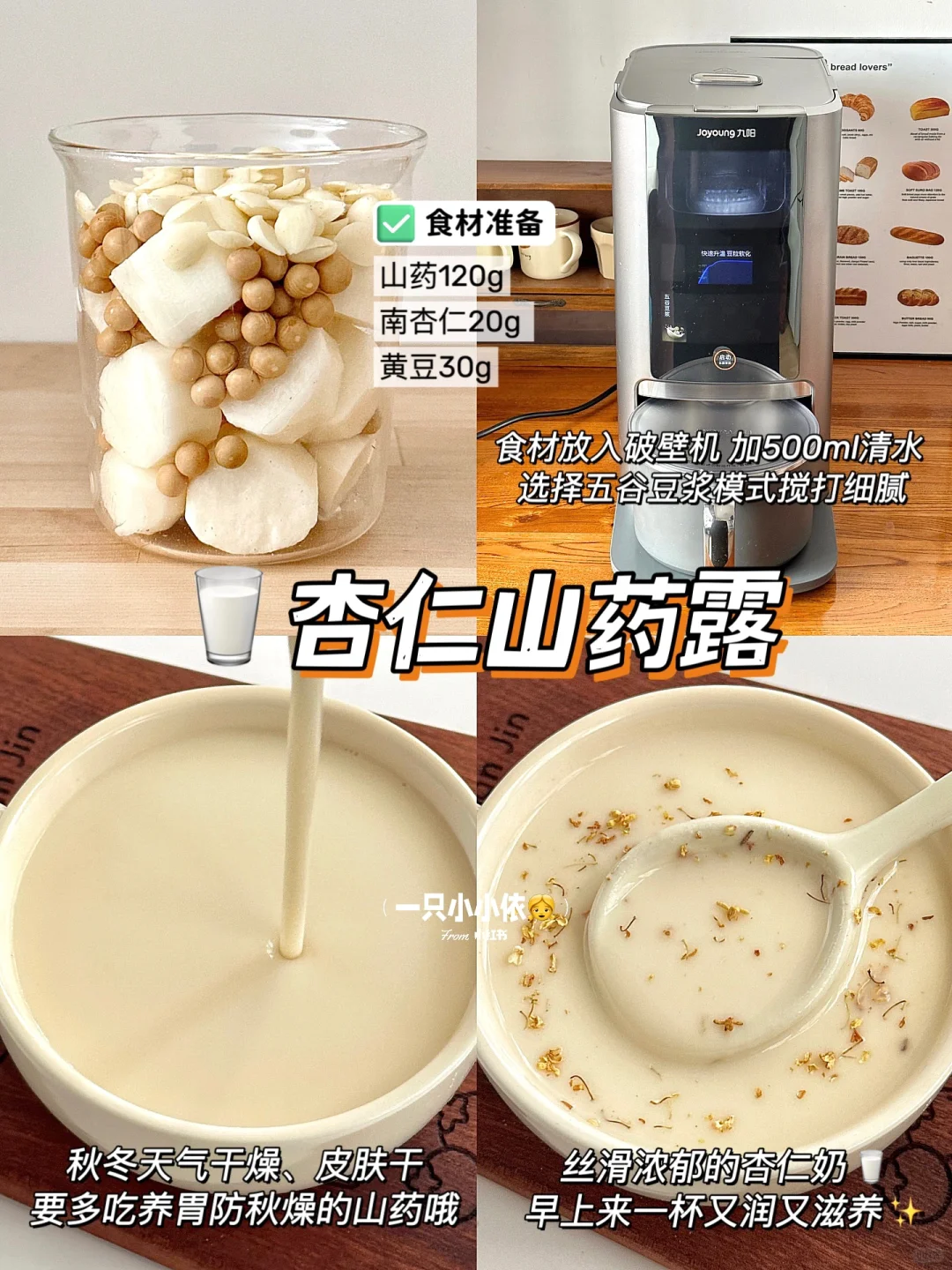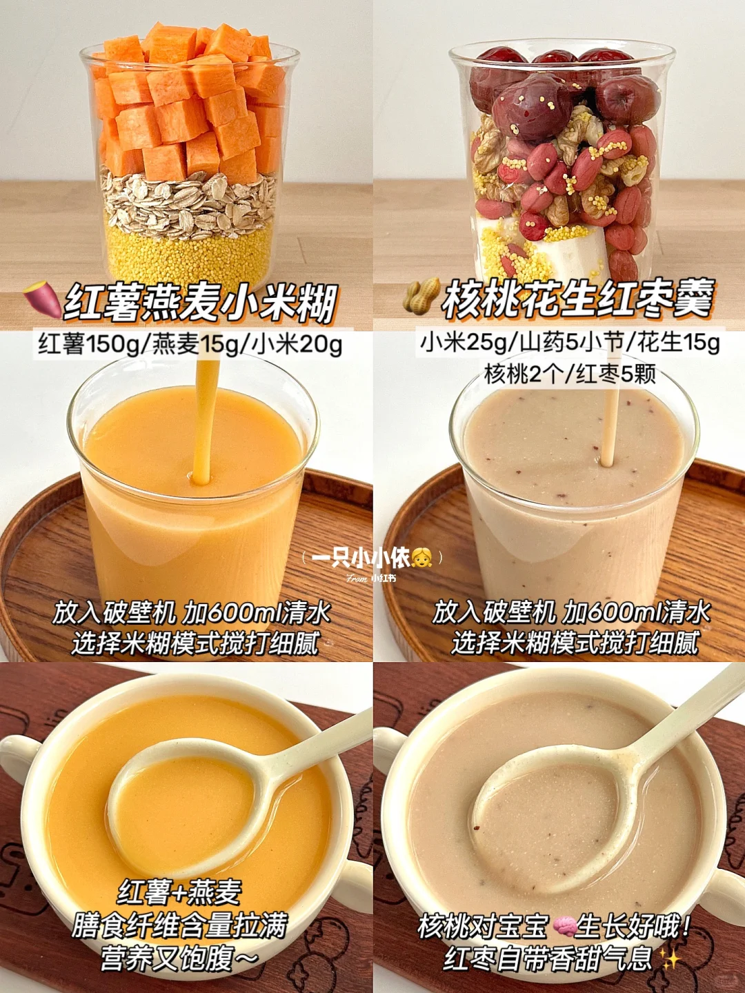 气温骤降🍂速速开启养生模式! 9⃣️种经典配方,为营养早餐加分!食材往破壁机里一丢,就能解锁一杯醇香丝滑的米糊/豆浆🥛早上来一杯,滋养润燥💦抗yan补气🩸,对长身体的小朋友和经常熬夜的大朋友都很好!快收藏好给家人做起来吧~[大笑R] · ——✨9款喝不腻秋冬养生热饮✨—— · 🍵绿豆薏米豆浆 🌽糯香玉米汁 红薯燕麦小米糊 🥛红豆香芋牛乳 ✨紫薯燕麦豆浆 🎃南瓜银耳露 🌈杏仁山药露 🥜核桃花生红枣羹 🫘黑米红豆豆浆 · ✅比例都在图上啦,喜甜的可加少许冰糖 ✅食材都是生的,无需提前浸泡,直接丢进破壁机就好 ✅喜欢浓稠口感的少防水,喜欢清淡口感的多放水 ✅打好后晾至温热再倒入牛奶搅拌 · ✨想要米糊好喝有营养,关键看破壁机是否实力在线!我家一直在用的九阳全自动食补调理破壁机Y8,简直是古希腊掌管破壁机的神!👏🏻👏🏻以前做完米糊总要手动清洗,但是它打好后可以自动进入清洗模式,清洗完后还会自动烘干,不担心滋生异味和细菌,全自动不用手洗真的对懒人太友好了! · [哇R]而且它可以针对不同食材,定制对应萃取工艺,并且它还有自研的全新慧瞳遥感技术👀可以做到持续的高温熬煮,再配上强大的粉碎系统精控粉碎食材,能做到充分萃取营养💯打出来的米糊细腻有营养,小朋友特别爱喝! · 有时候早上打豆浆害怕吵到家人休息😴有了九阳Y8就不用担心啦!它的变频无刷轻音电机和太空隔音舱三重降噪技术,可以从源头降低噪音,将搅打豆浆的分贝控制在45分贝左右✨安静的不像个破壁机!300-1500ml大容量,全家人一起享受~[害羞R] · 有时候懒得搭配,可以直接用它搭配好的破壁料理谷物包,28包一个月不重样![赞R]一撕、一倒、一按,30分钟就能得到一杯热乎乎的营养米糊🥛早上喝一杯也太幸福啦! 有了九阳Y8,养生早餐轻松搞定![偷笑R] ·