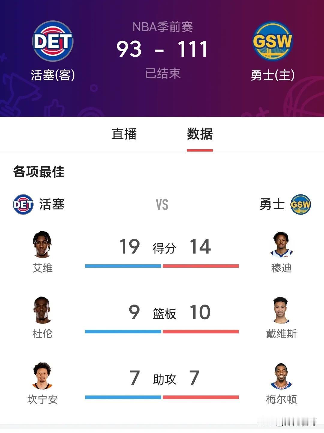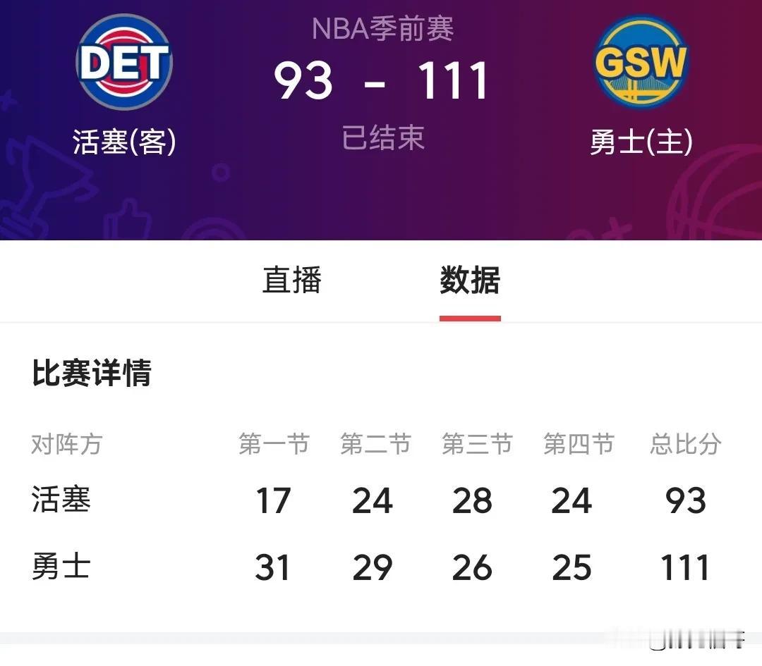 NBA季前赛: 活塞与勇士的激情碰撞 在这个阳光明媚的 10 月 14 日,NBA 季前赛的舞台上,活塞与勇士展开了一场激烈的角逐,这场比赛那叫一个精彩! 先来说说得分方面,勇士队的库里仿佛重回巅峰,三分球如雨般落下,一人就独砍 30 分。而活塞队这边,格兰特也不甘示弱,里突外投拿下 25 分。篮板球的争夺更是激烈非凡,勇士队的格林发挥出色,抢下了 12 个篮板,为球队提供了多次二次进攻的机会。活塞队的中锋也表现不俗,摘下了 10 个篮板。 助攻方面,勇士队的汤普森送出了 8 次精妙的传球,帮助队友轻松得分。活塞队的后卫也有 6 次助攻的不错表现。 在防守端,双方也是拼尽全力。勇士队的防守策略十分严密,让活塞队的命中率受到了很大的限制。活塞队同样展现出强硬的防守态度,多次造成勇士队的失误。 据相关数据统计,这场比赛的命中率,勇士队整体达到了 48%,活塞队则为 45%。从这些数据不难看出,两队都发挥出了自己的实力。 专家表示,这场比赛充分展示了季前赛的锻炼价值,对于球队磨合阵容和球员找回比赛状态都有着重要的意义。 总之,这场活塞与勇士的季前赛,就像一场精彩的篮球盛宴,让球迷们大饱眼福。相信在未来的常规赛中,两队都会有更出色的表现!#活塞勇士对决# #库里还能战十年#