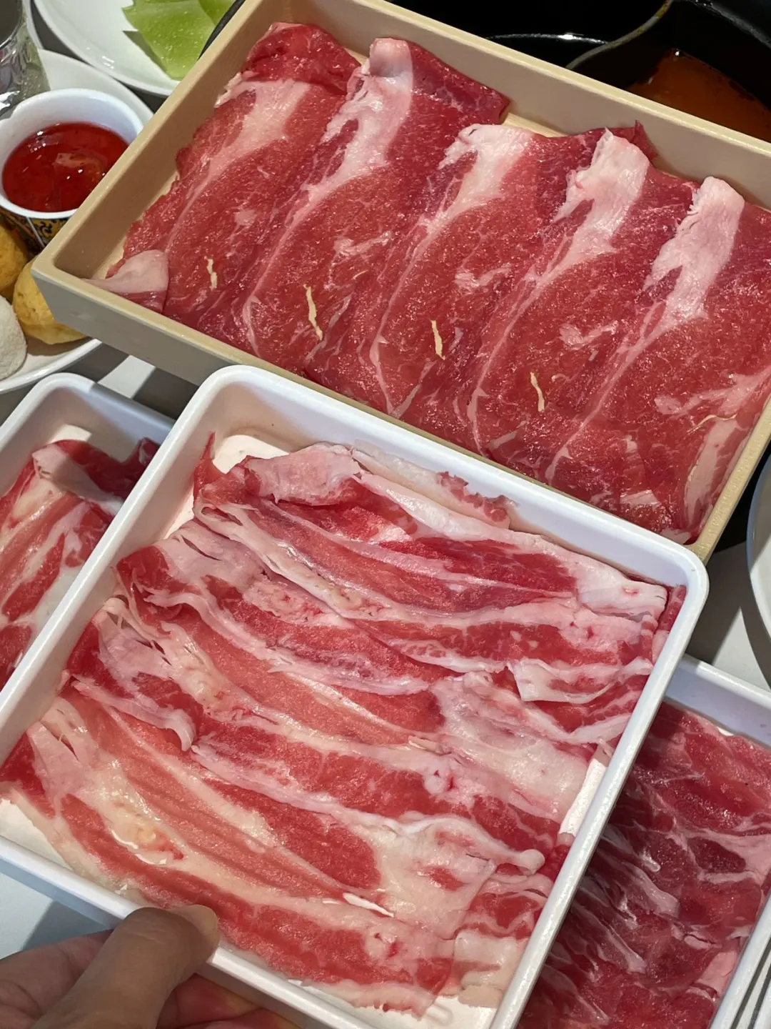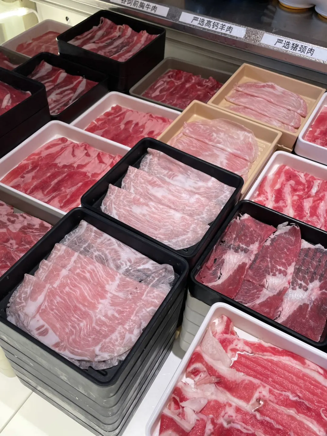 涮肉类🥩的食材品种也太丰富了吧,肉眼可见的新鲜,每日都有六种以上的牛肉可选,🈶乡间肥牛、甄选谷饲牛肉、雪花肥牛、上脑盖、甄选牛肉粒、谷饲前胸牛肉,每种都好吃😋尤其是那红白相间的雪花肥牛🉑真是一口封神了,漂亮的纹理,入口嫩滑,蘸上可生食蛋液🥚吃,🉑真是鲜上加鲜了,终于可以大口大口的吃牛肉了,吃得超满足😋