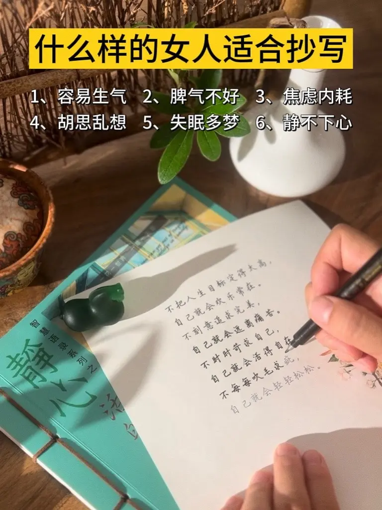 看完这段话你就不焦虑了!以前出了问题呢,都觉得是别人的问题 总觉得自己怎么那么倒霉,那么不幸福 但是现在才明白 其实人生到了下半场,敌人就剩下自己 问题来了呢,就解决问题 如果这个问题真的解决不了的话,那就学会好好接受 做一个佛系的女子,疲惫烦躁的时侯不妨抄抄写写 让内心平复,回归安宁,越安静,越简单 心有多静,你的福有多深!