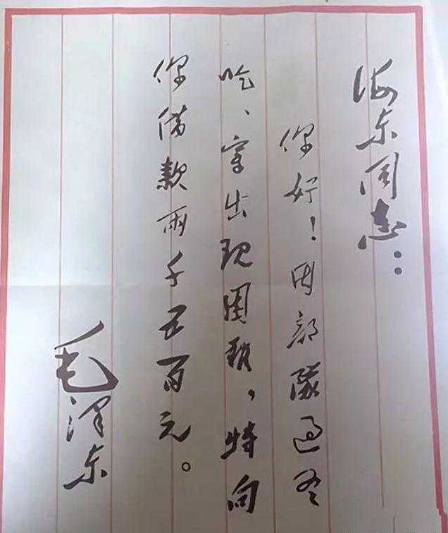 于是,很快毛泽东便给徐海东写了一封信,信中说了借钱的事,相当于打了个借条,之后,派供给部长杨至诚送给徐海东。