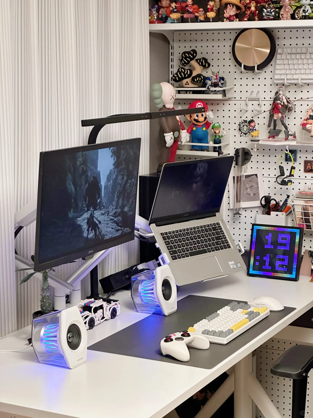 大家好,📣欢迎来参观我的游戏书桌,作为一名34岁的大叔,不仅爱玩游戏,还搜集了很多手办,洞洞板+书桌的搭配总能吸引不少朋友的目光。