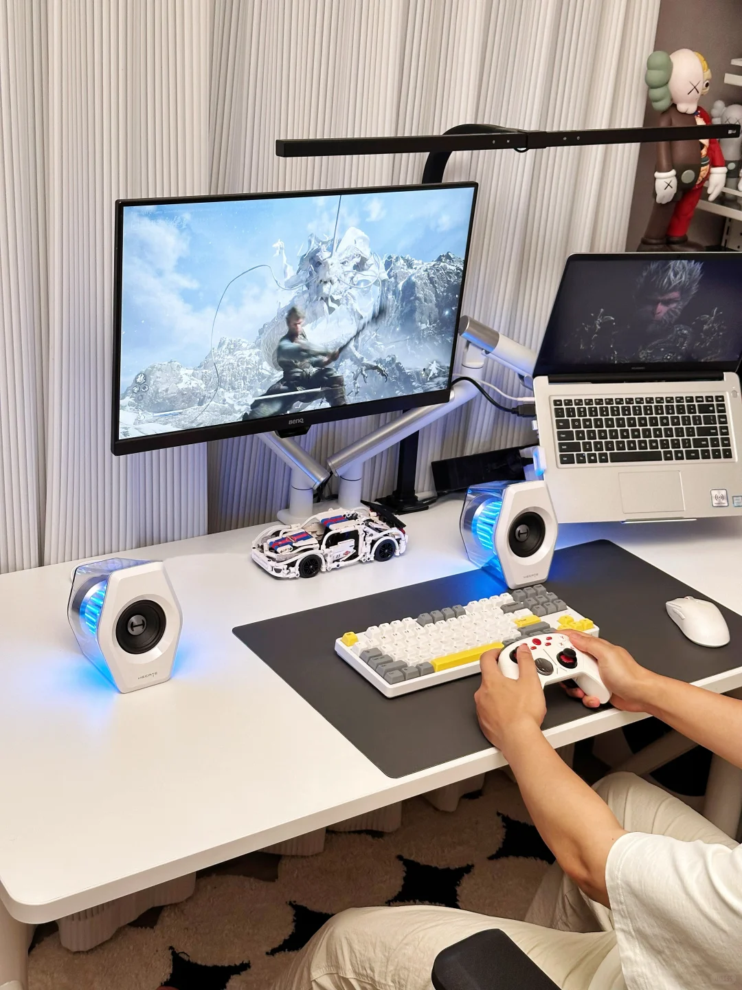 🎮蕞近大家都爱玩《黑神话悟空》,我就跟大家分享一个秘密装备——漫步者G3000桌面音箱。🎵