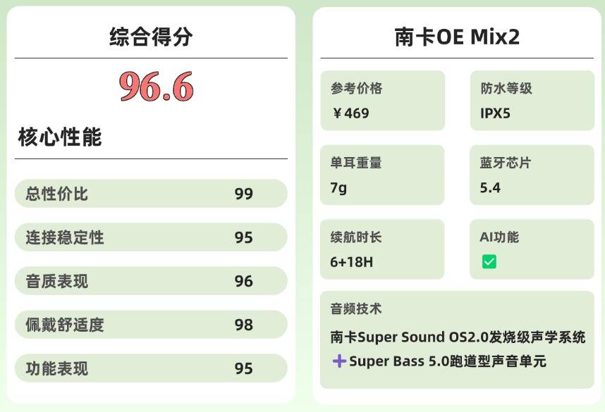 蓝牙耳机什么牌子质量好?1.南卡OE Mix2