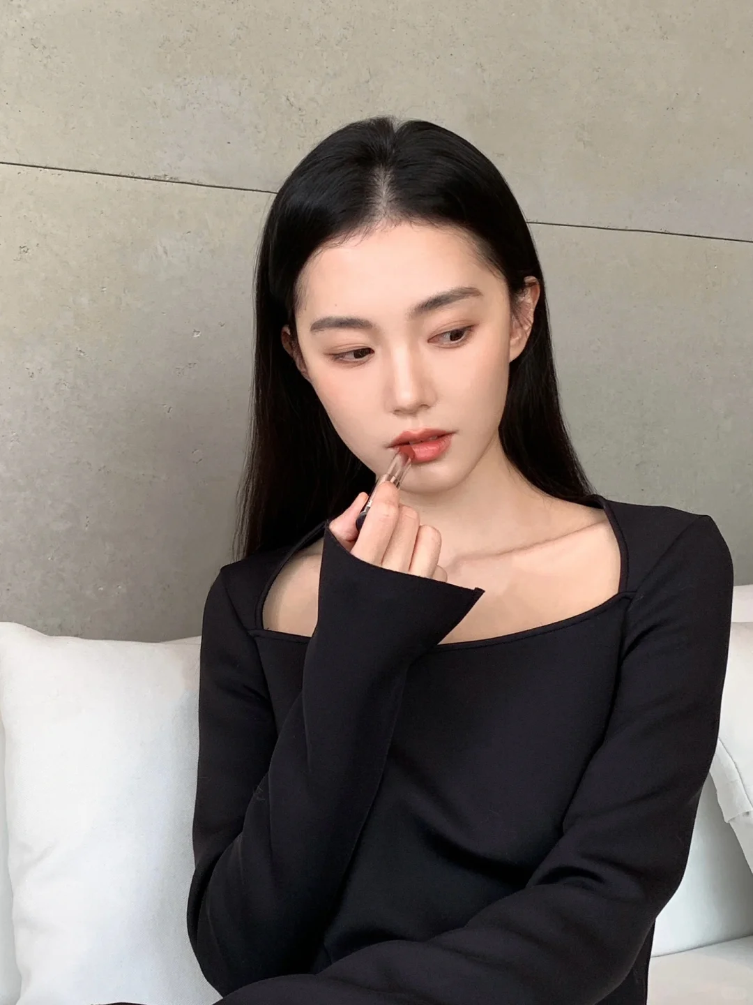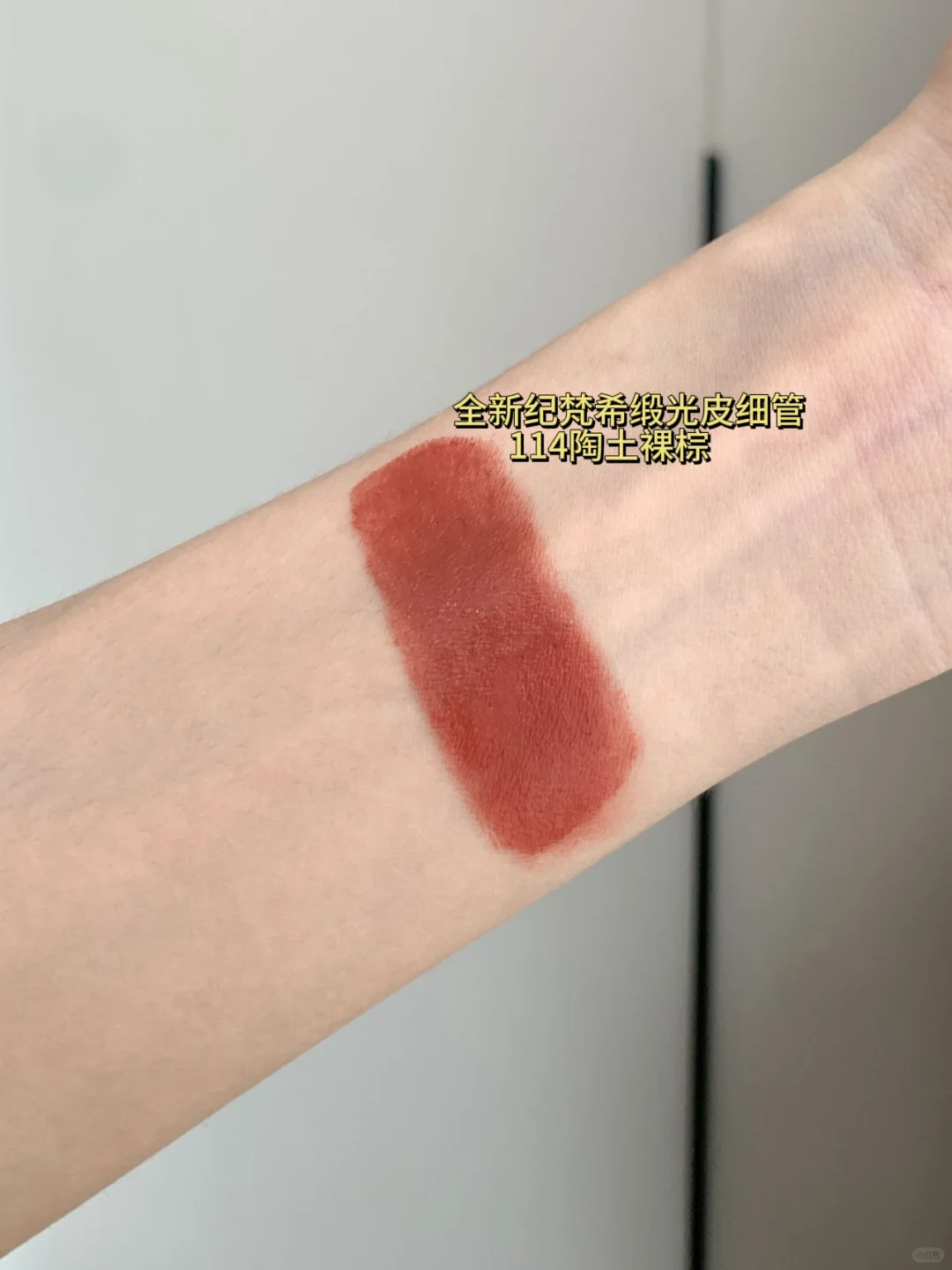 口红用的是纪梵希新出的缎光皮细管114陶土裸棕