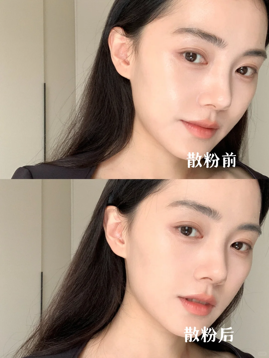 完妆后便是匀净通透的微光泽肌