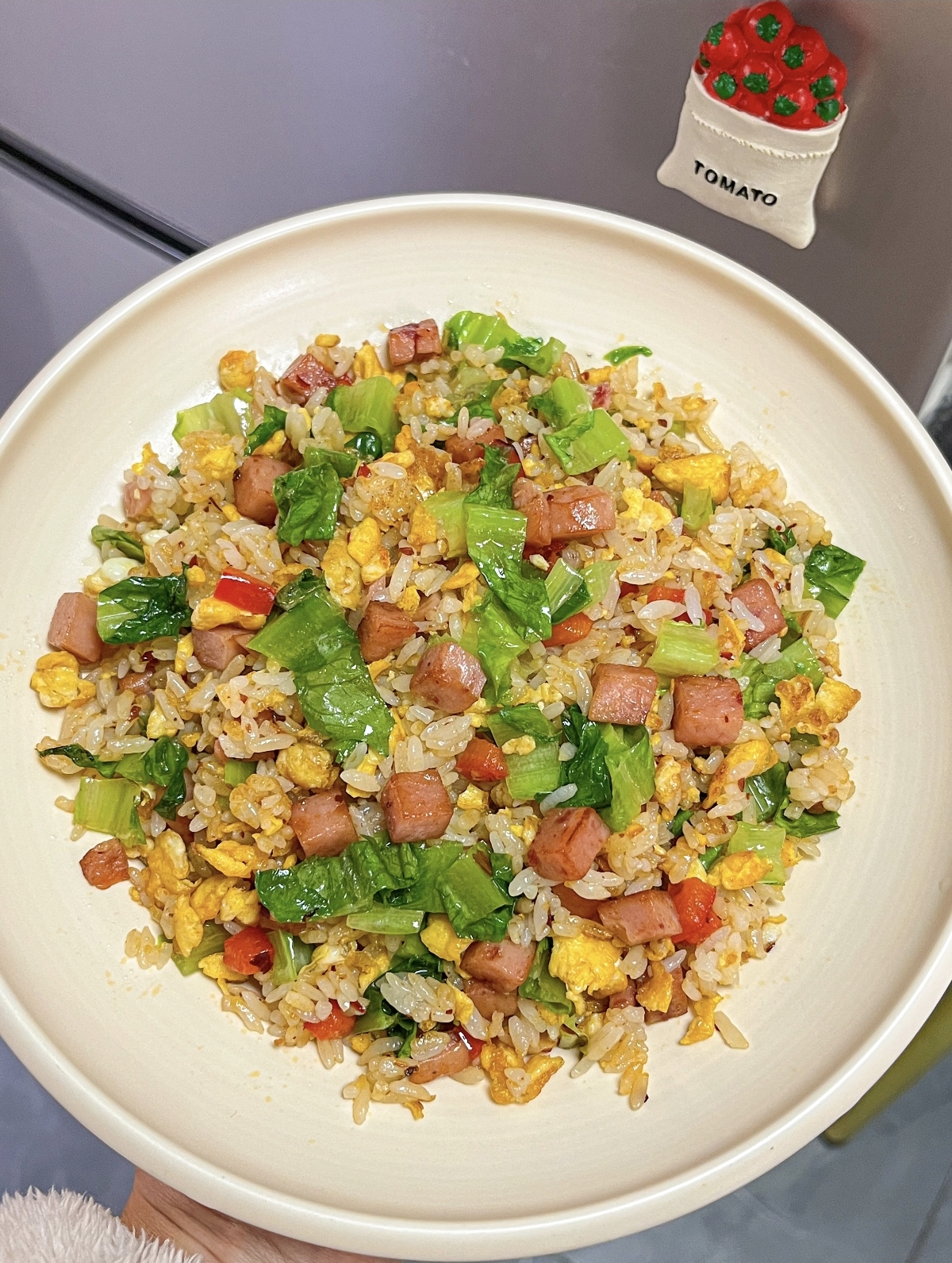 盛出一碗热气腾腾的午餐肉蛋炒饭,看着金黄的米粒间夹杂着粉嫩的肉丁和焦黄的鸡蛋,色彩斑斓得让人食欲大开。第一口下去,米饭的干香与午餐肉的咸鲜在口腔中交织,鸡蛋的软嫩中和了整体的口感,每一口都是满满的幸福感。这哪里是简单的剩饭处理,分明是一场舌尖上的狂欢。在这个快节奏的世界里,或许我们无法顿顿享用山珍海味,但这一碗充满烟火气的午餐肉蛋炒饭,足以抚平一天的疲惫,让我们重新爱上这热气腾腾的生活。