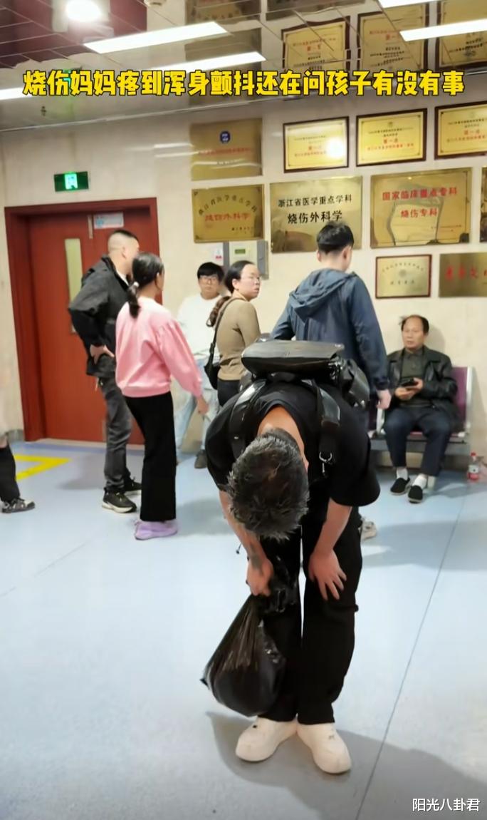 最触及人心的是,宝妈在被烧伤后第一时间不是关心自己,而是忍着剧痛跪着抱起孩子,那一刻,母爱的伟大胜过了一切。