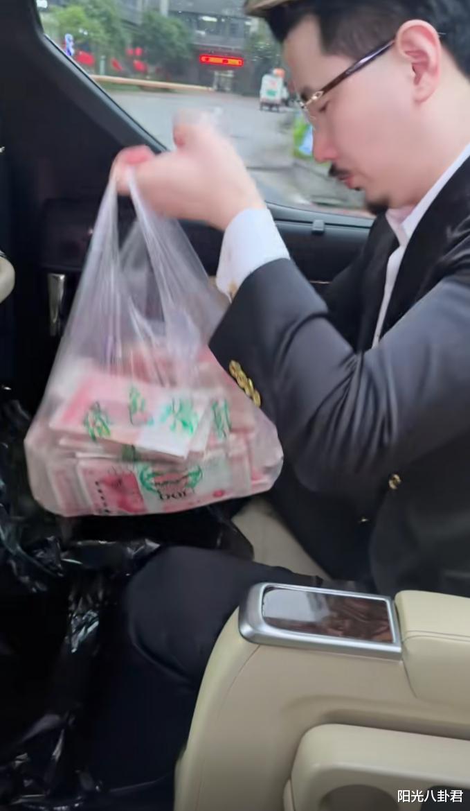 值得一提的是,国岳夫妇所带的30万现金只用一个透明塑料袋装着,上车后才又加上了一个黑色垃圾袋,夫妻二人的内心似乎也是十分急迫,连换个袋子的时间都没有。