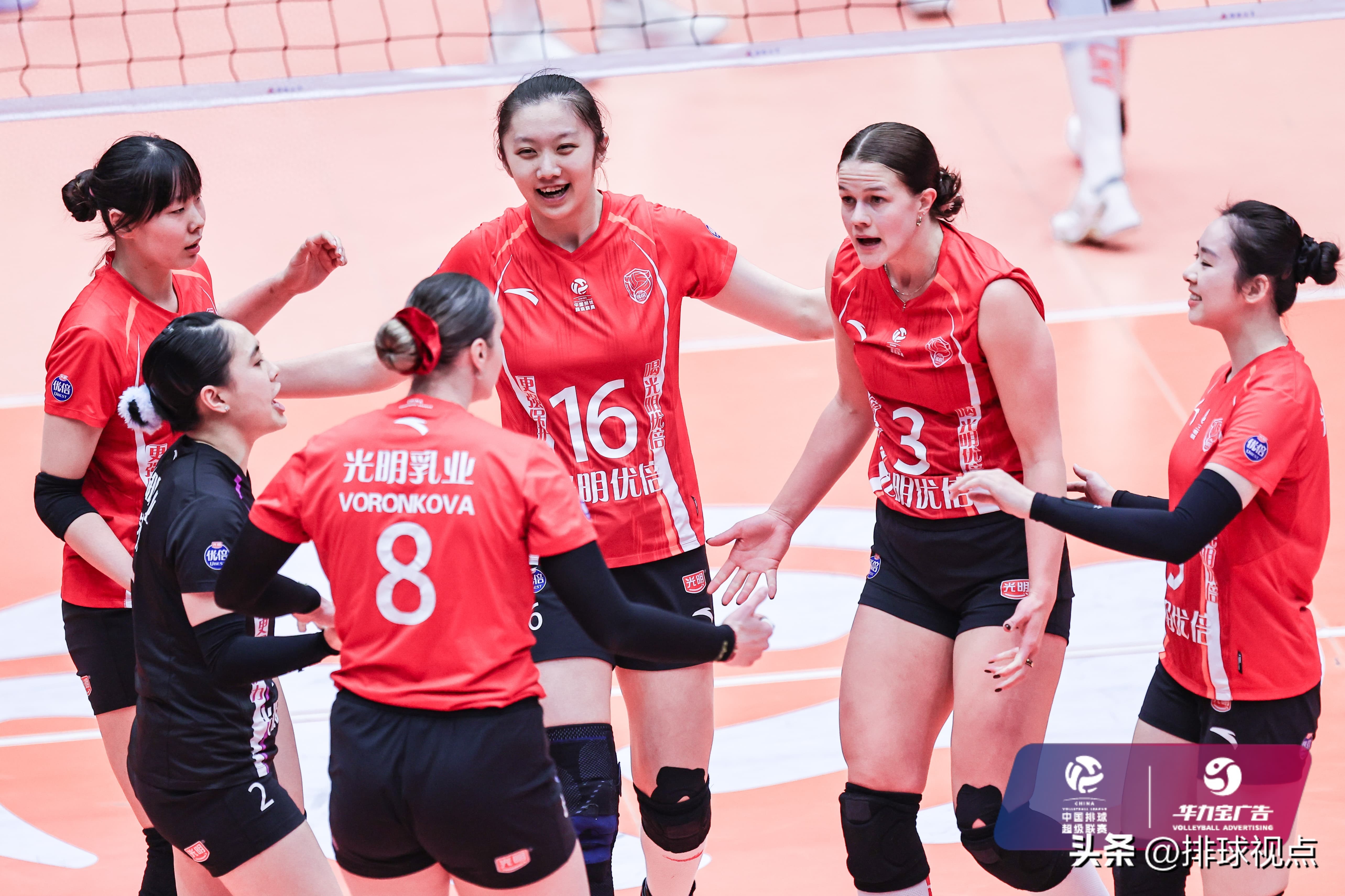中国女排超级联赛A级半决赛第二回合,上海女排主场3:1再胜山东,四局比分为:25-13、25-20、24-26、25-13!主客场双杀顺利晋级决赛!将与江苏女排争冠!