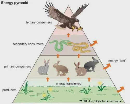 还记得小学课本上学过的"能量金字塔"吗?在生态系统中,能量是从底层向上层传递的,每一层都会损失大量能量。食草动物直接从植物获取能量,而食肉动物则要通过捕食其他动物来获取能量。这意味着,相同重量的食草动物肉比食肉动物肉含有更多的能量。