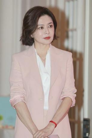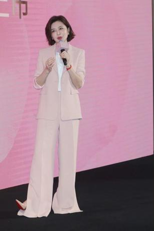关之琳这一身浅粉色西装套装也很大气,西装的长度适中,刚好落在臀部附近,利落的线条勾勒出简约大气的轮廓。中袖设计更是独具匠心,露出纤细小臂,在干练中融入一丝轻盈感,打破了传统西装的刻板印象。结合经典的西装翻领,精致有型,穿的时候微微敞开露出内搭,分分钟营造出自然的层次感。