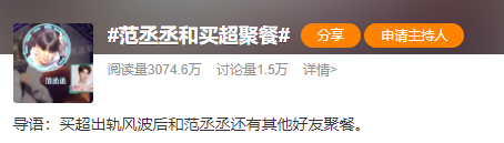而除了恋爱一事,有网友发现,当天一起参加聚餐的还有买超。
