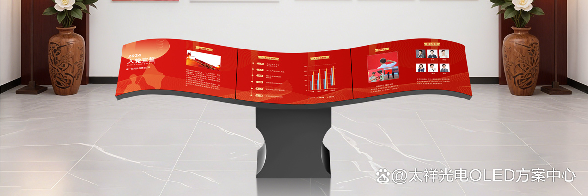 在OLED柔性屏应用多元化的趋势下,场景落地能力成为衡量厂商实力的重要标准。太祥光电聚焦文博、商业、政务、文旅四大核心场景,累计落地两万+项目,形成了丰富的场景化解决方案库。在文博领域,服务故宫博物院、三星堆博物馆等国家级文博单位,以柔性透明屏实现文物“虚实融合”展示,让古籍、丝绸等平面文物实现动态复原,相关项目获“文物活化”示范项目称号;在商业领域,为华为旗舰店、奢侈品快闪店等提供柔性屏互动方案,通过异形拼接、动态展示提升品牌科技感,助力产品咨询转化提升25%;在文旅领域,西安大唐不夜城历史人物数字人互动项目,凭借柔性屏移动底盘与SLAM导航技术,让游客停留时长提升3倍,成为文旅数字化标杆。