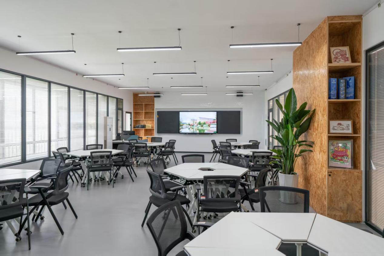 在这里,老师不再是唯一的主角,小组讨论、项目式学习、跨校区远程互动成为常态。阳光透过整面落地窗洒在桌面,绿植在角落舒展枝叶,清新明快的环境里,知识不再是被动接收,而是主动探索与创造。