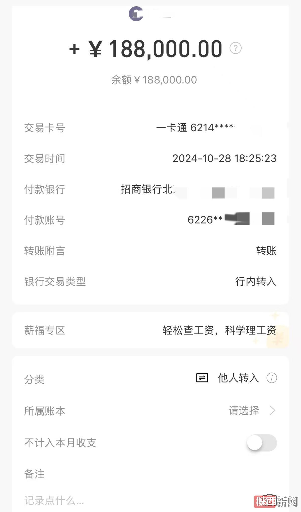 余涛的转账记录(受访者供图)