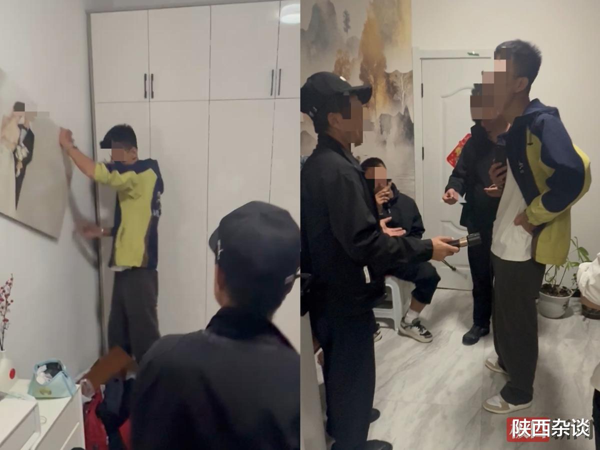 男方人员在婚房“闹事”时拆结婚照(受访者供图)