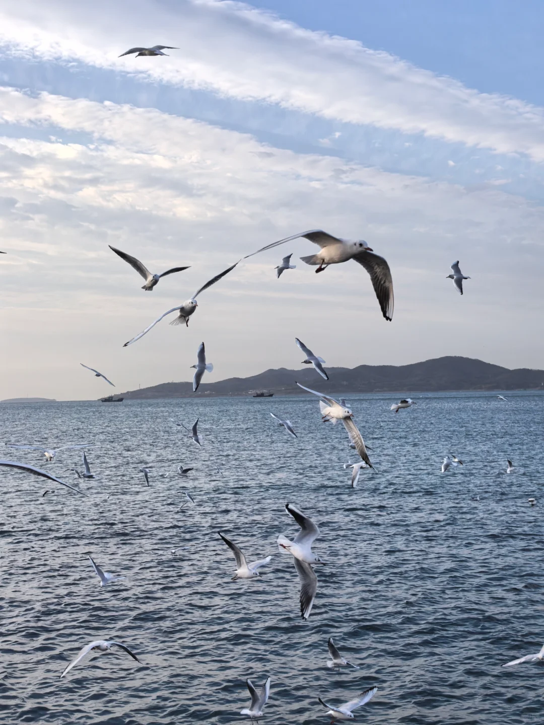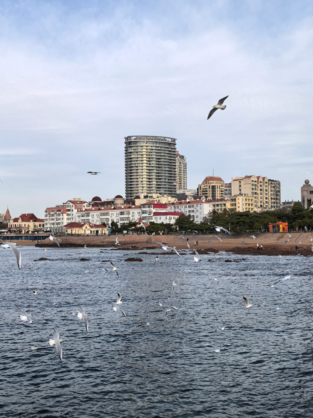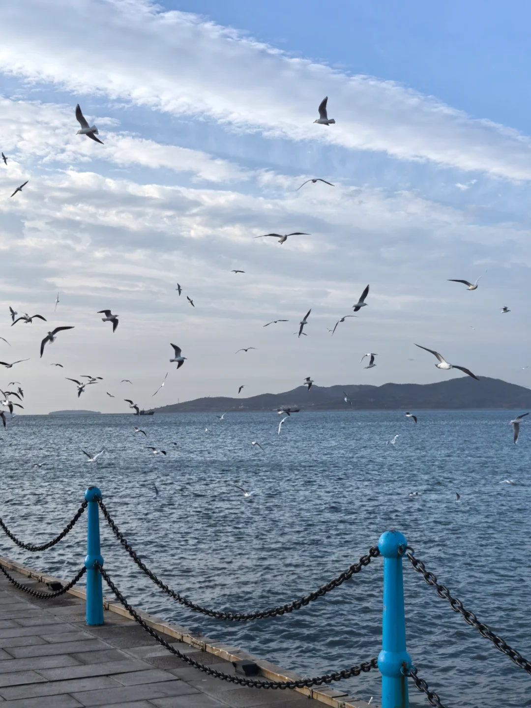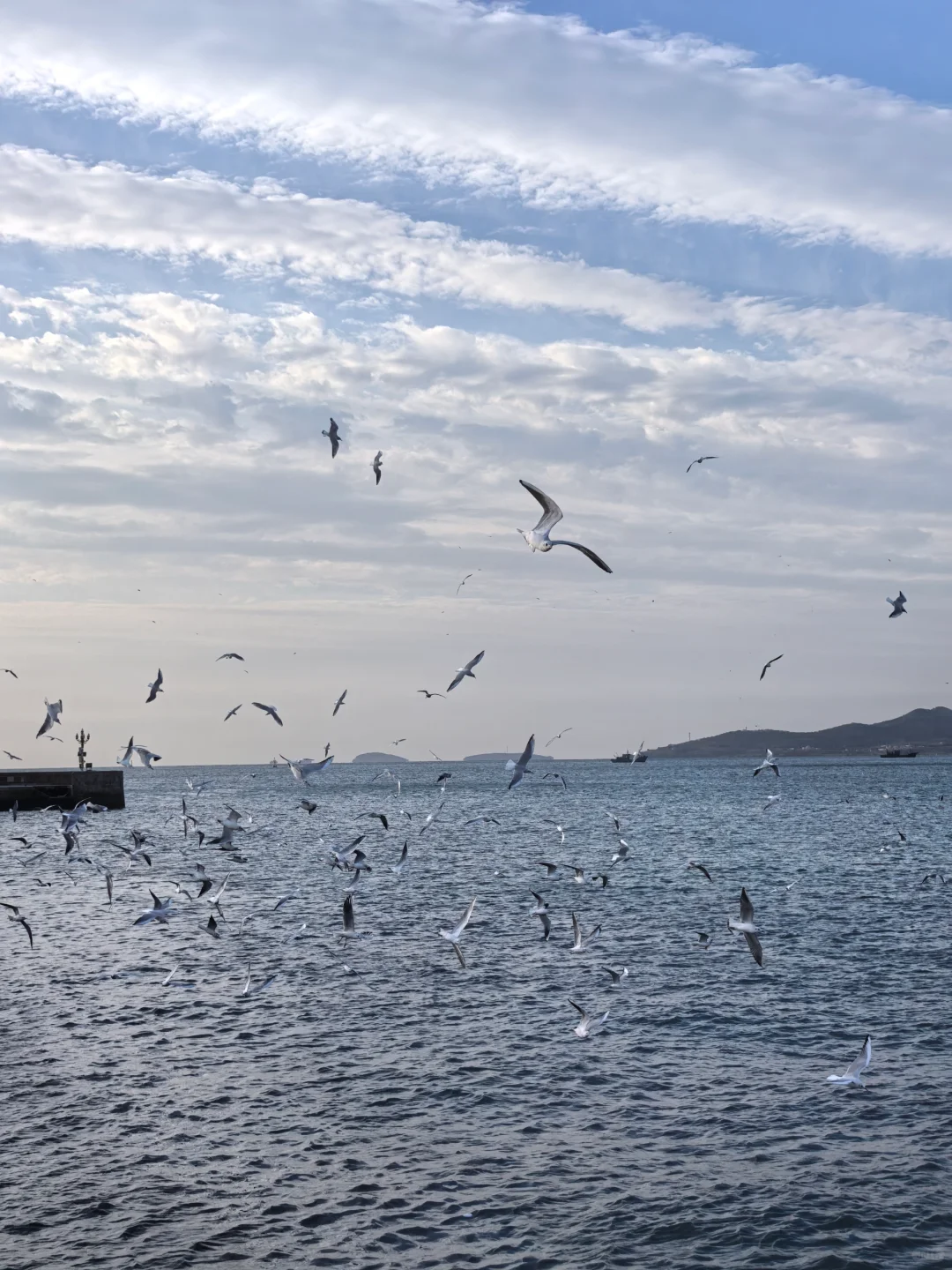 青岛栈桥海鸥 兄弟们有食儿😃跟我冲!
