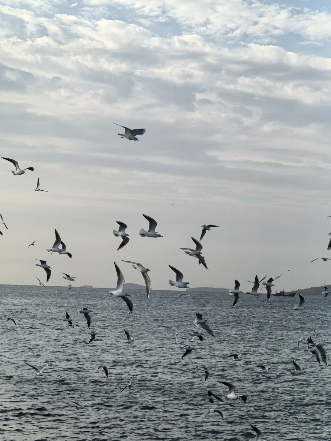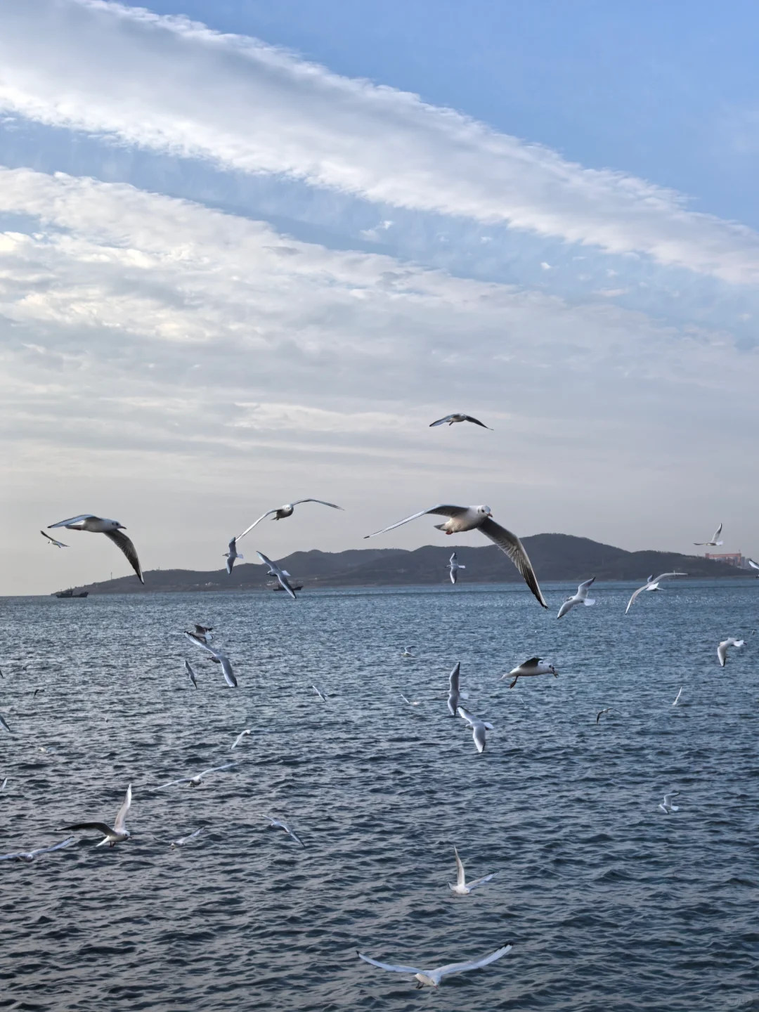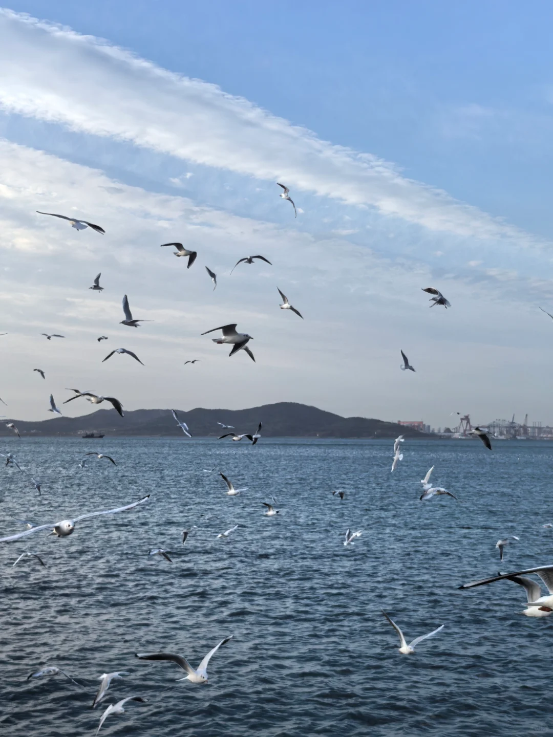 青岛栈桥海鸥 兄弟们有食儿😃跟我冲!