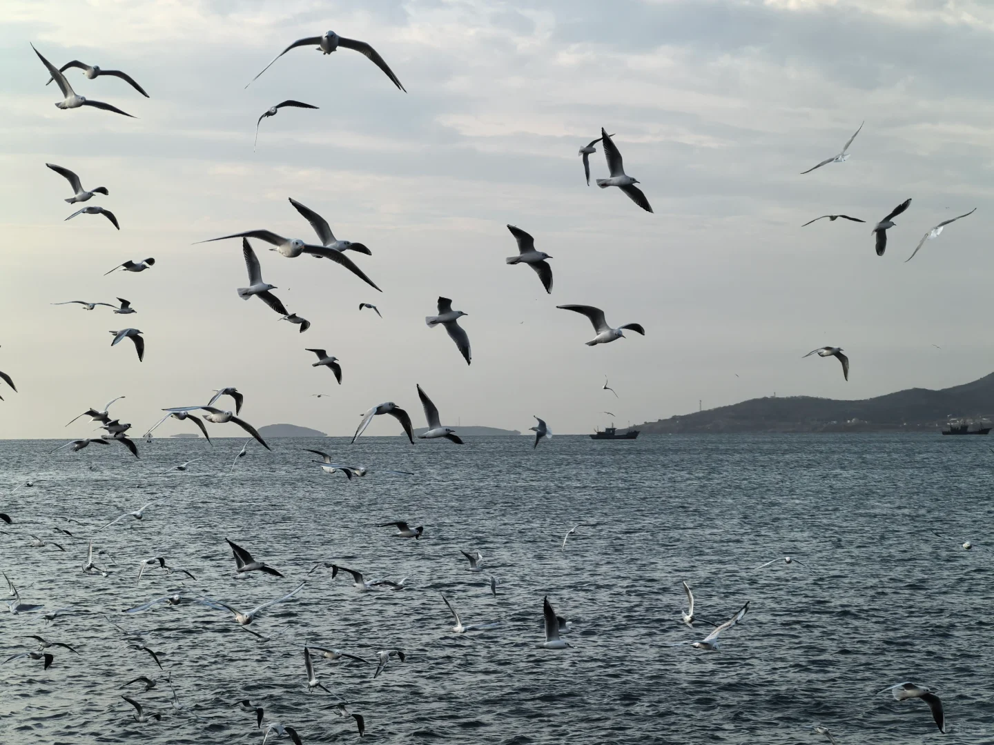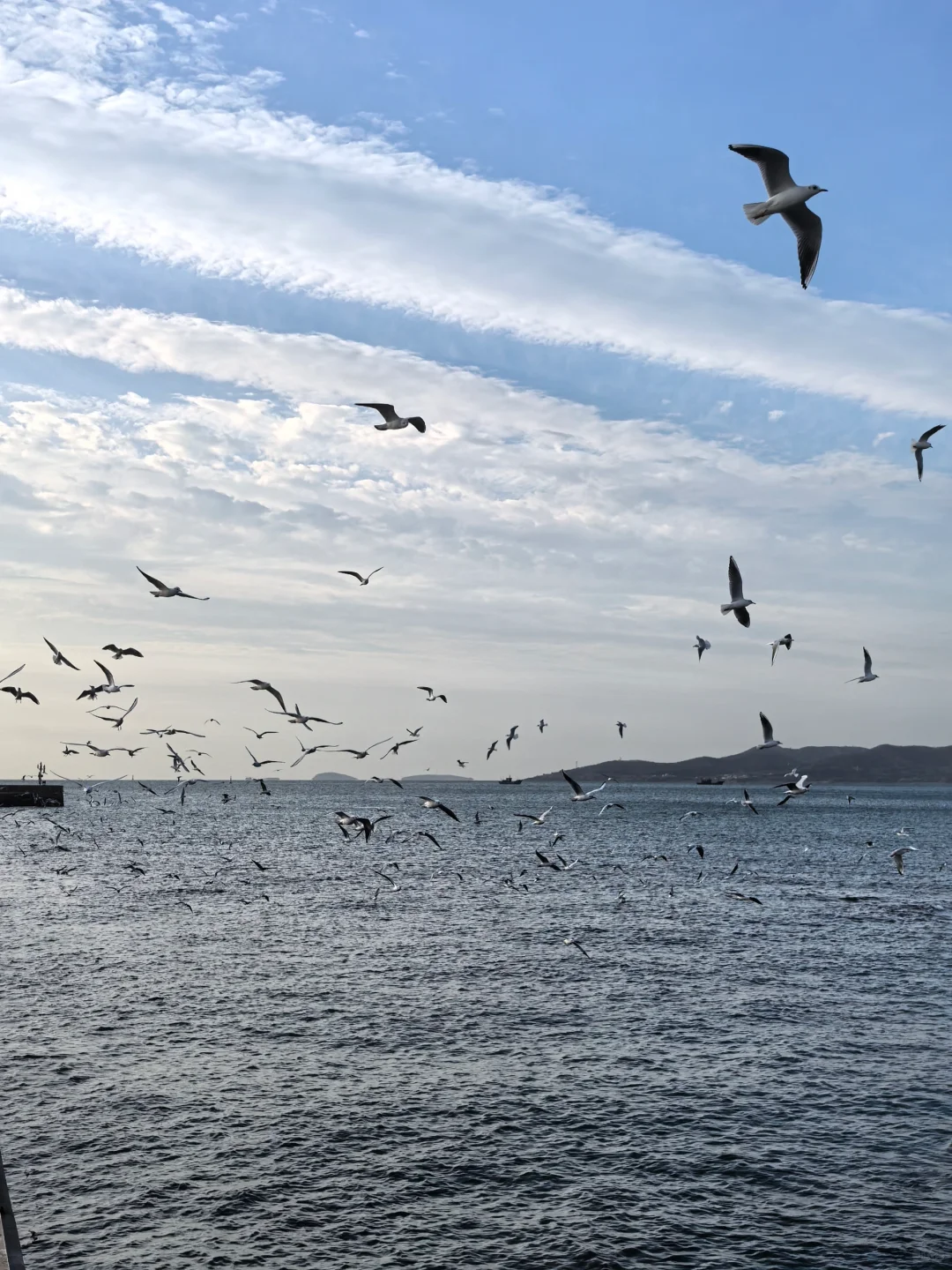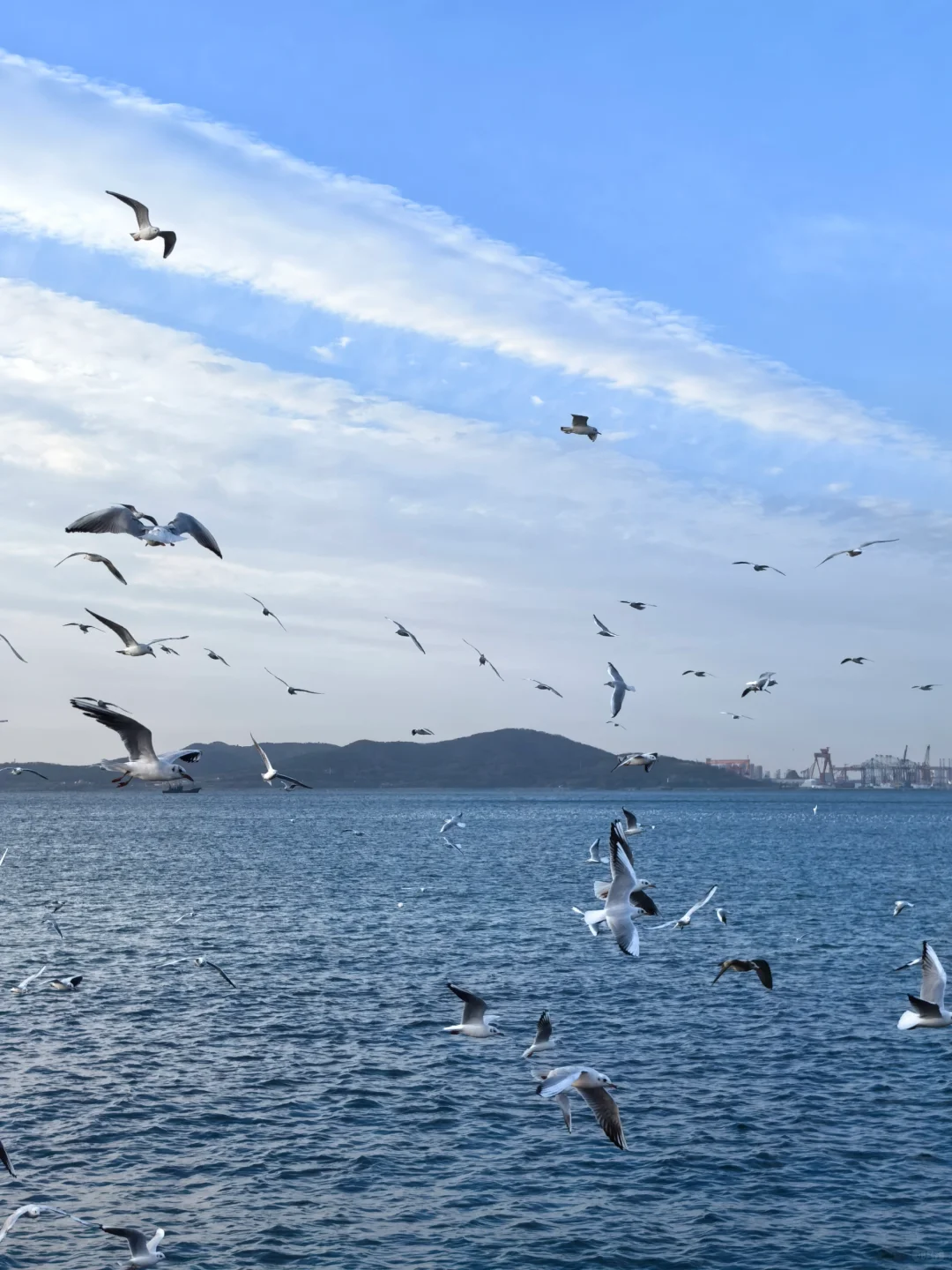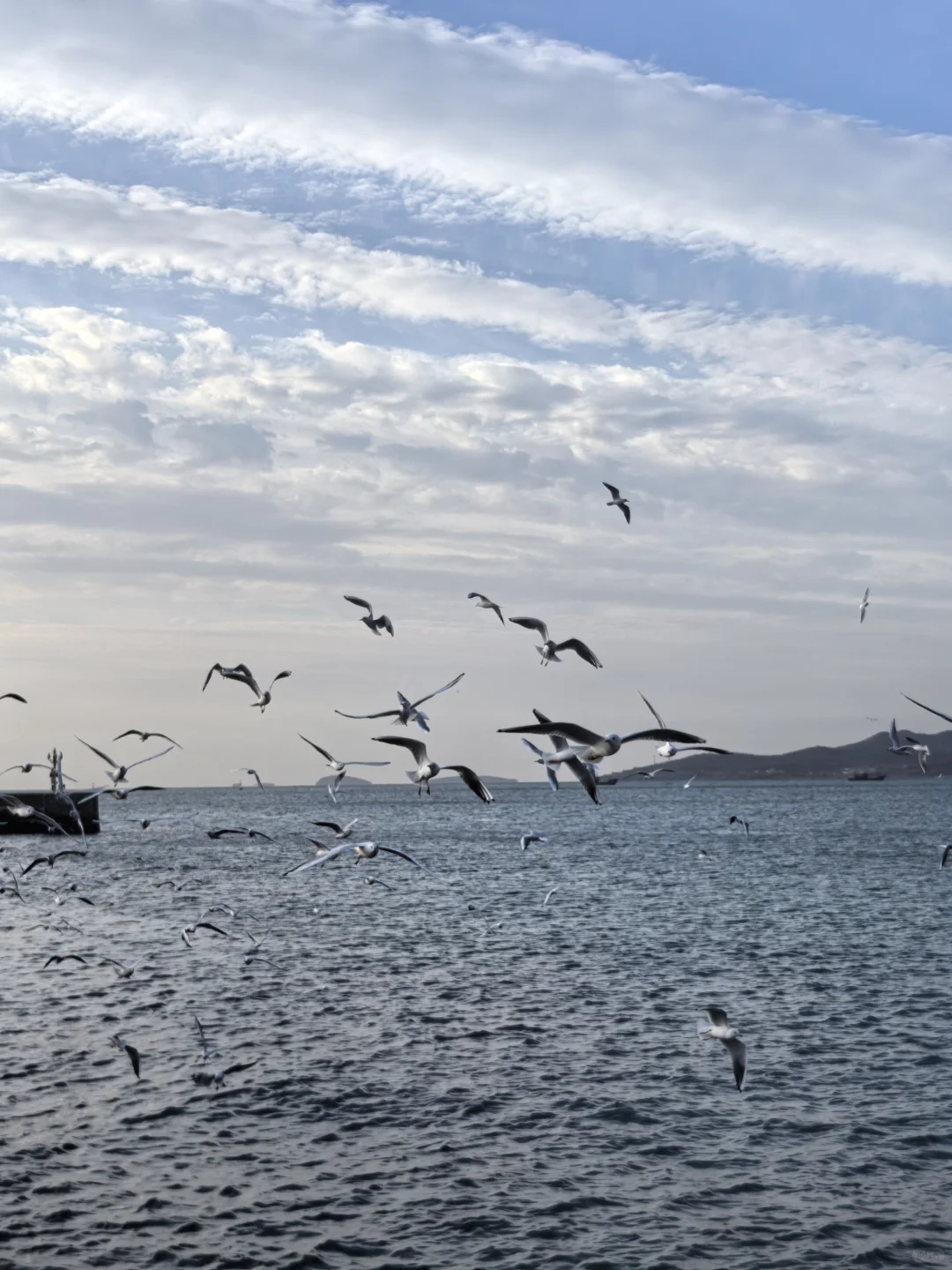 青岛栈桥海鸥 兄弟们有食儿😃跟我冲!