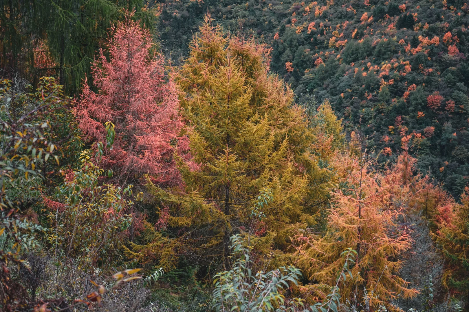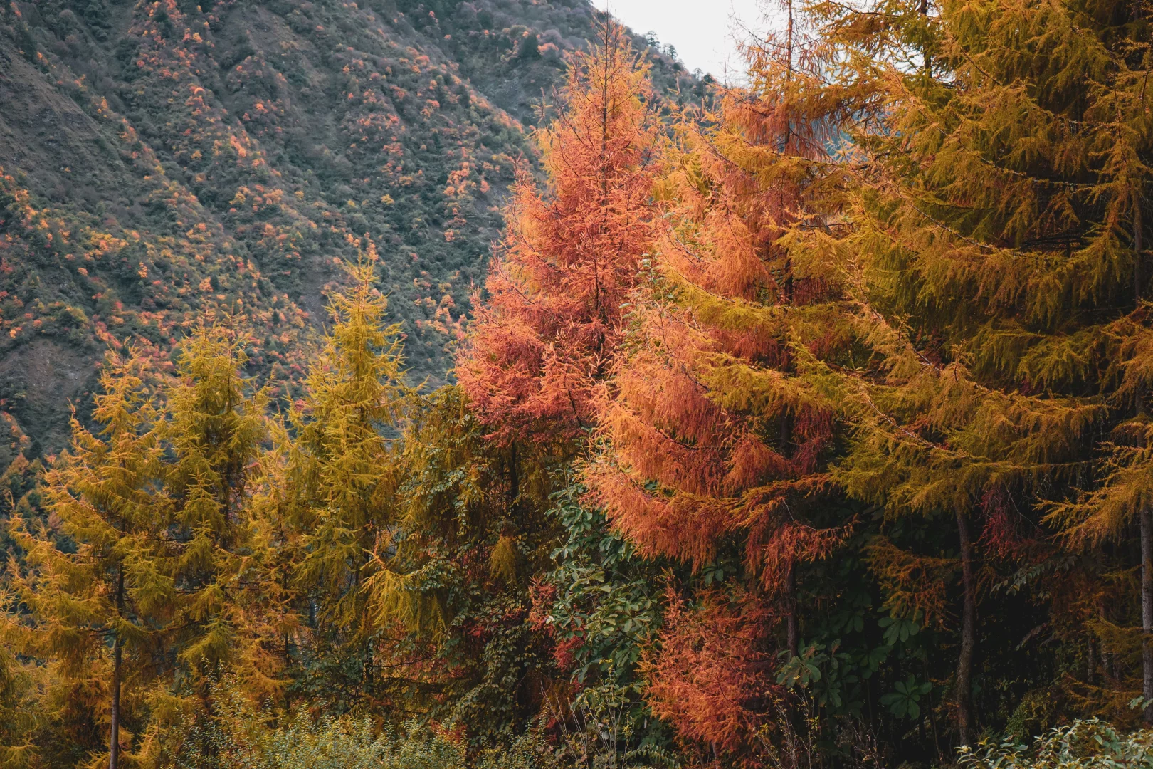 构成了一幅秋天的彩林,层林尽染