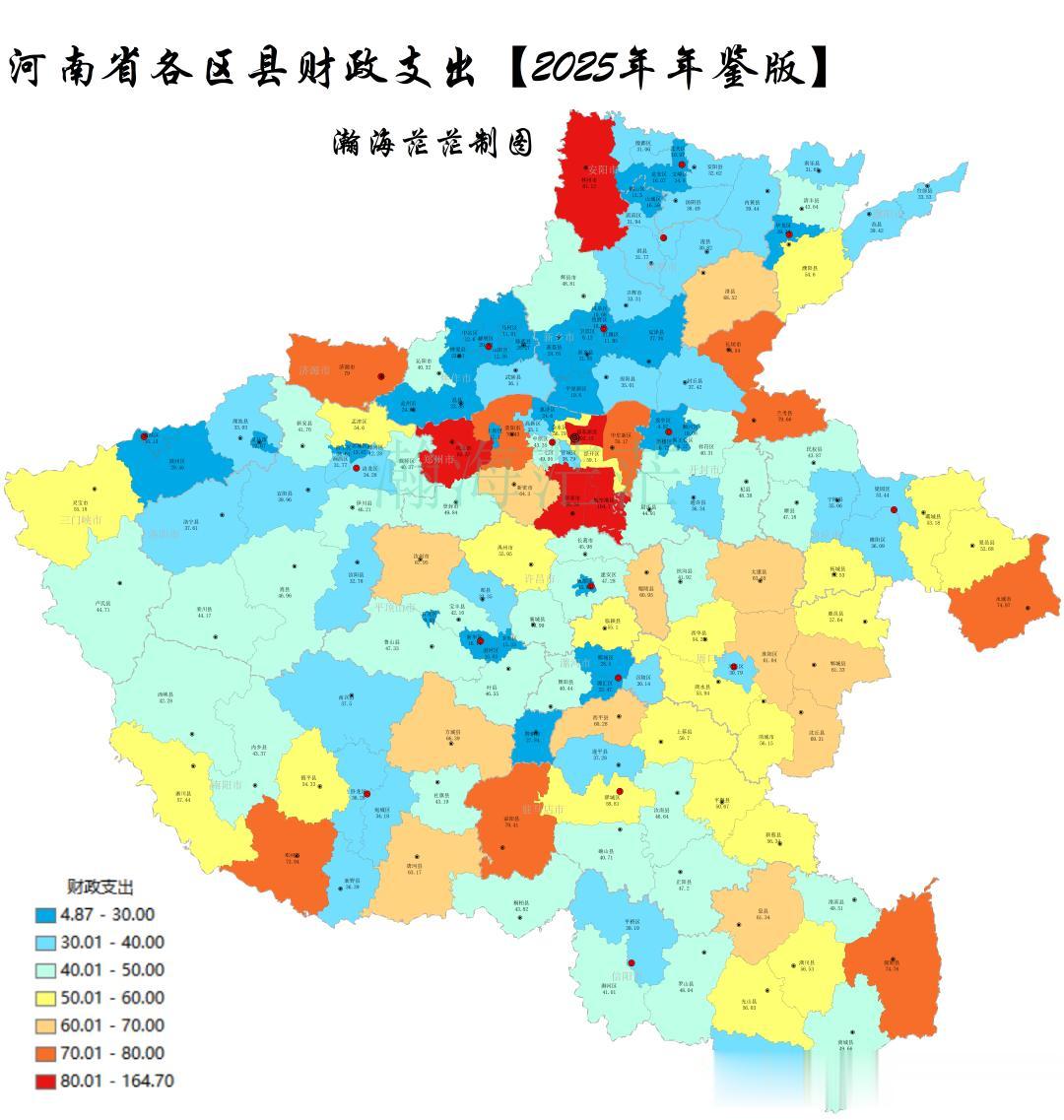 下面,我们来看下2024年河南省各区县财政支出情况,该数据仅有157个区县和郑州市四个功能区、新乡平原新区。不过这5个功能区显示在地图中,不显示到图表中了。