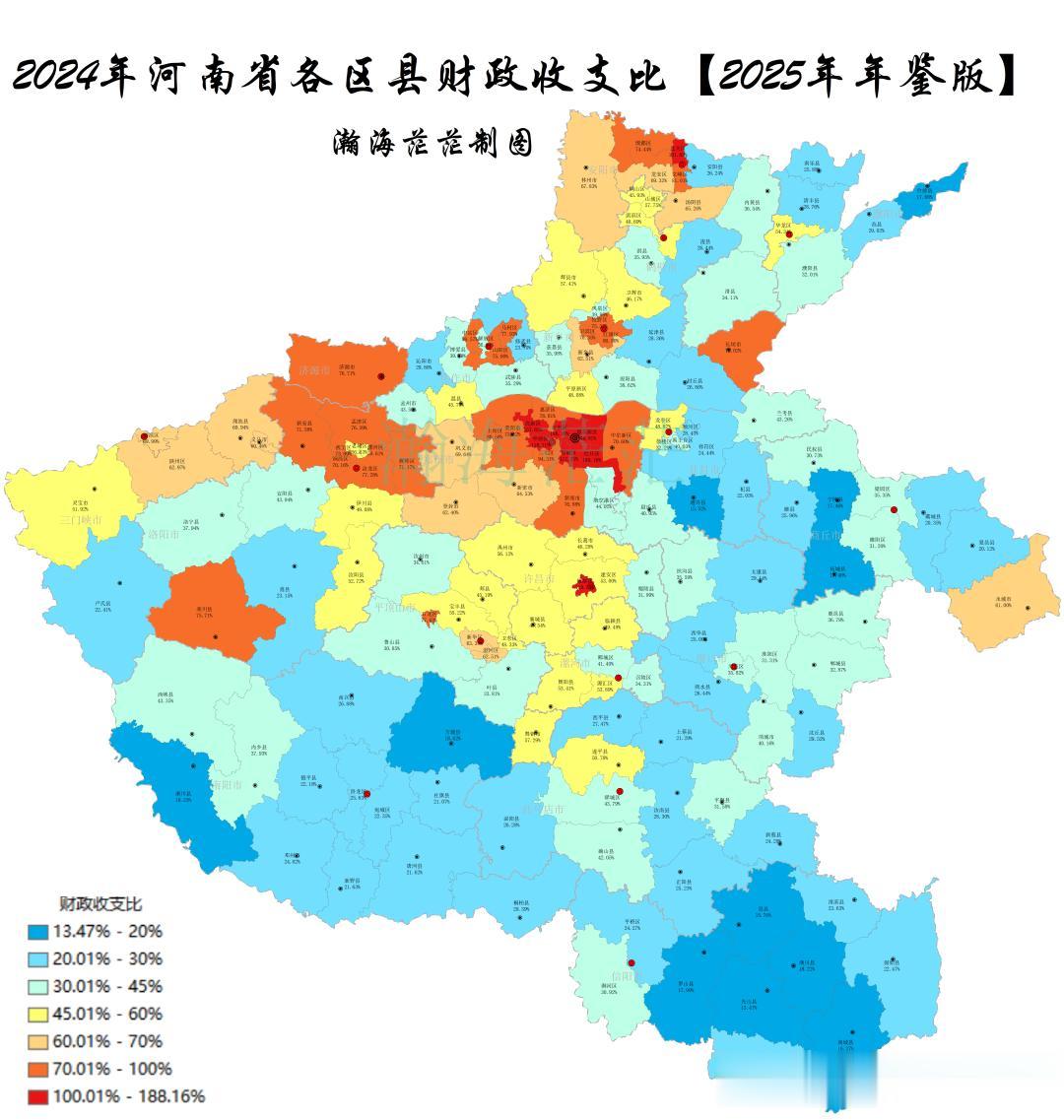 接着,我们继续来看下2024年河南省各区县财政收支比。
