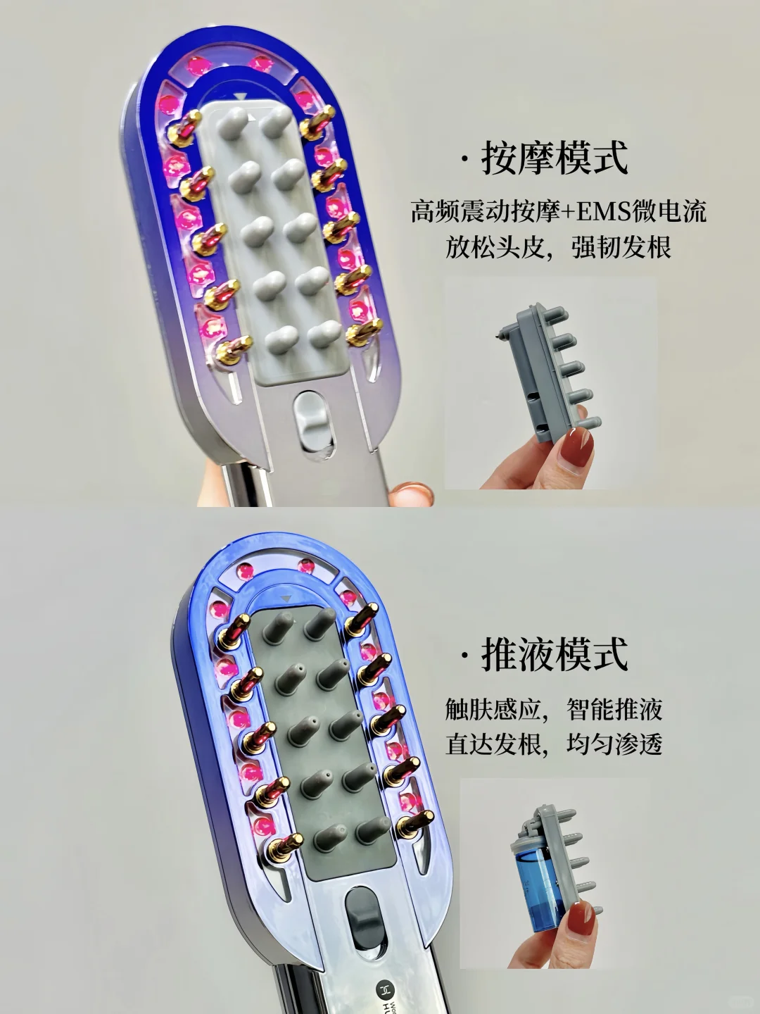 告别传统手抹式涂精华,一边梳头一边自动涂精华,帮助精华更好的吸收,解放双手!