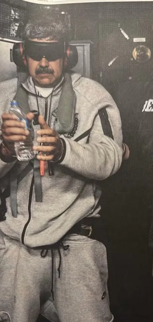 白宫发布的视频显示,马杜罗穿着黑色连帽运动衫和拖鞋,走在印有“DEA NYD”字样的蓝色地毯上。该视频仅12秒长,却传递出大量信息:马杜罗已被顺利转移至美国本土,并处于美方控制之下。