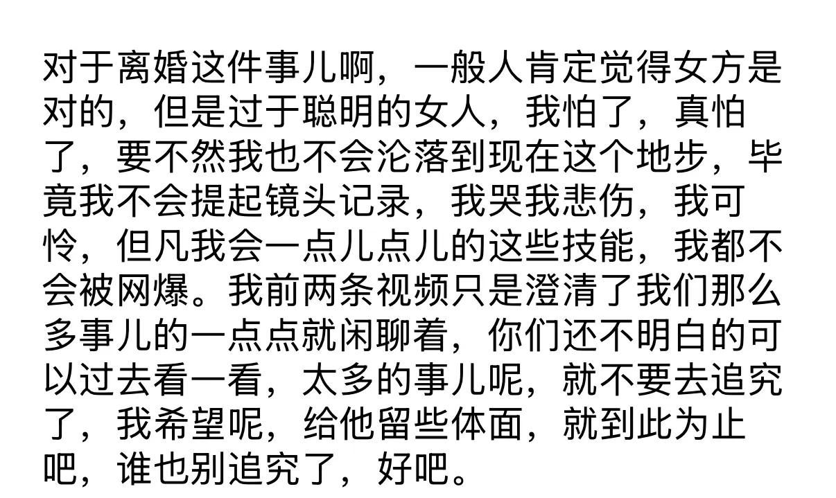 要真是有啥猛料爆出来,那自媒体圈里一半人都能靠她吃饭。可看她以前那视频,多半还是老套路,煽情一把,最后再来个“为了孩子我选择沉默”的煽情收尾。这招都快成网红离婚的标配了,要不咱们弄个自动生成器算了。