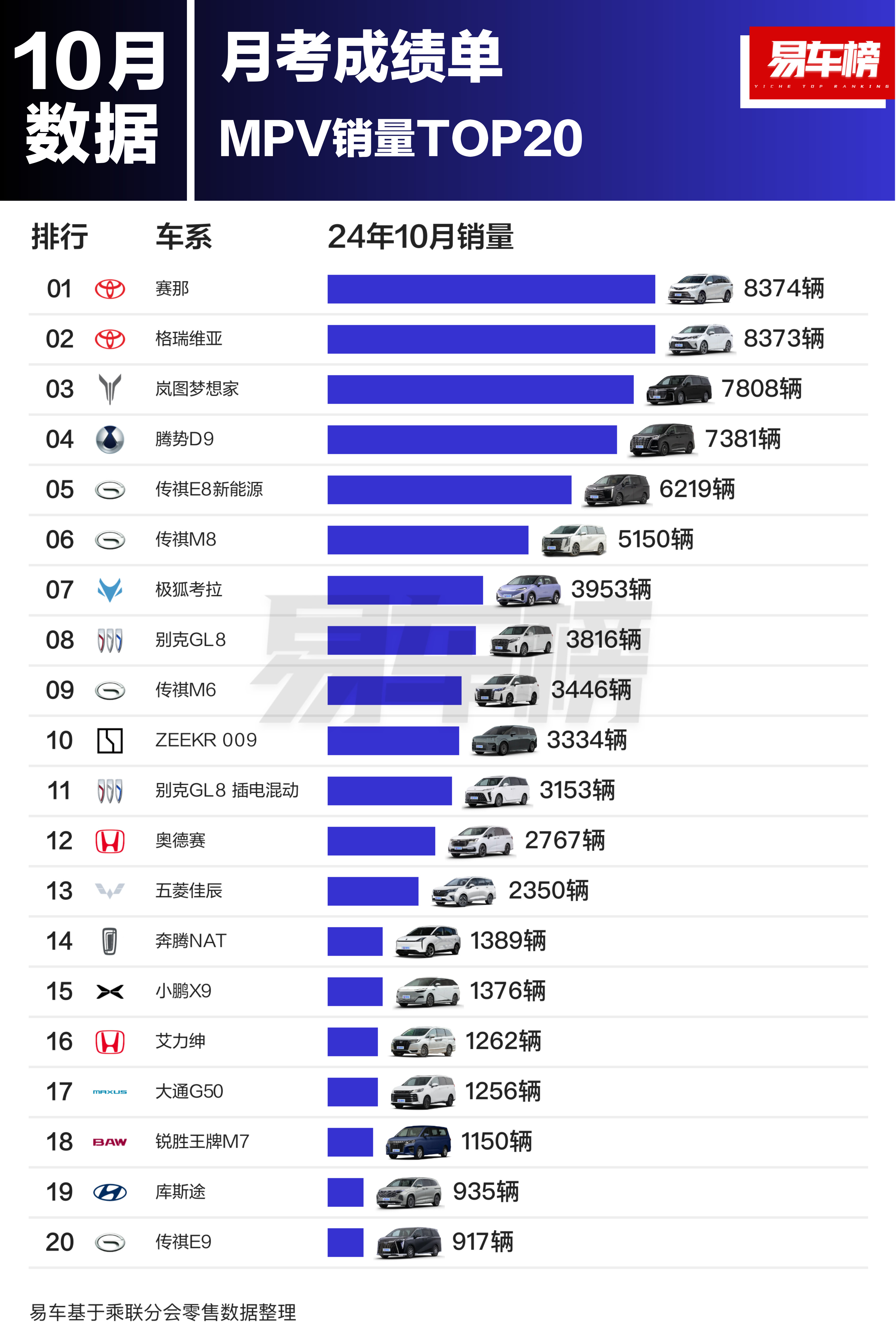 上个月最畅销的轿车是海鸥,最畅销的MPV是塞纳,最畅销的SUV是宋Plus