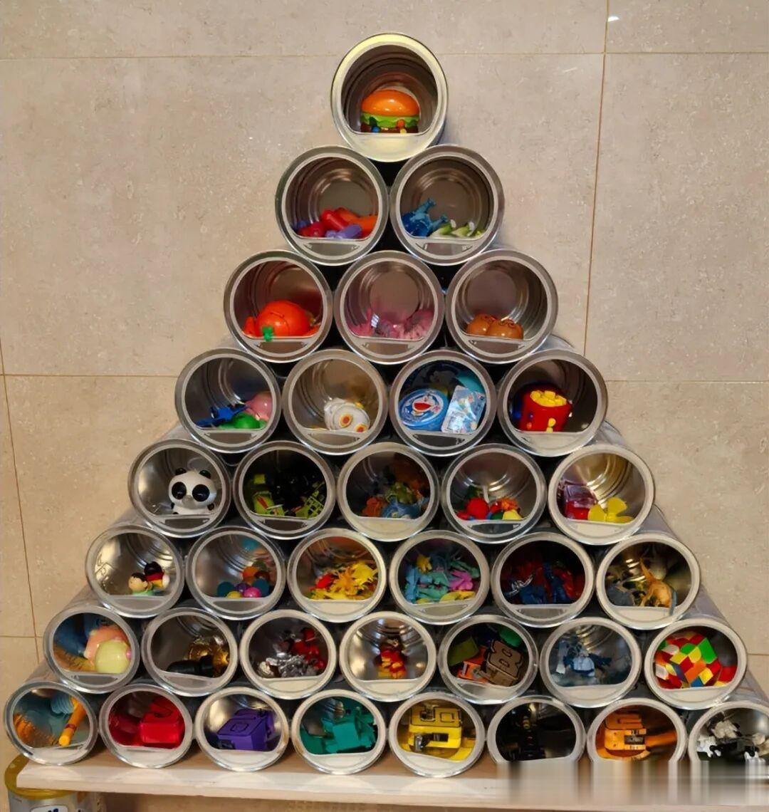 前几天去婆婆家,我发现这些放在我家占地方的奶粉罐,放在我婆婆家全都变成了收纳神器。