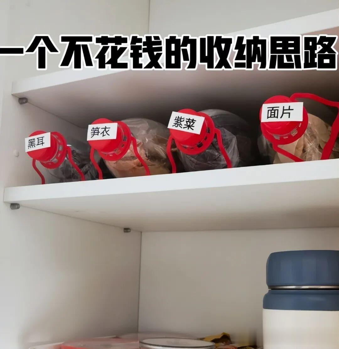 我婆婆说,只要是能用塑料瓶收纳的,她全都会装进瓶子里面。