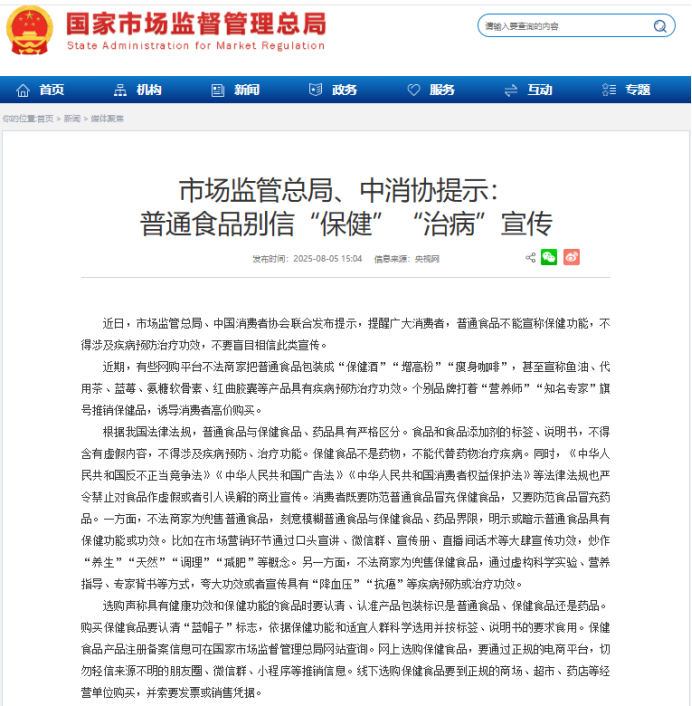依据《中华人民共和国广告法》、《中华人民共和国反不正当竞争法》及《中华人民共和国消费者权益保护法》等规定,市场监管部门严禁对食品作虚假或引人误解的商业宣传。消费者需时刻保持清醒,既要防范普通食品冒充保健食品,也要防范保健食品冒充药品。