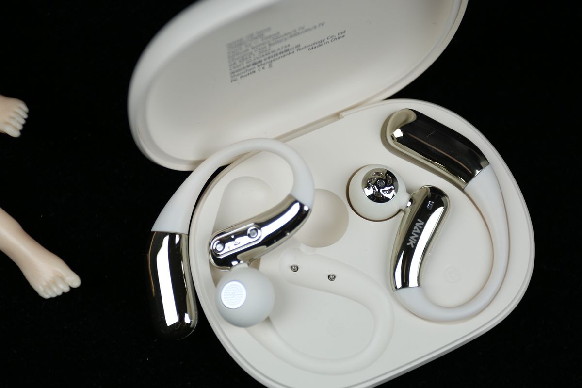 南卡OE Nova蓝牙开放式耳机采用Type-C接口充电,充电口设计在侧面,正面有一颗多功能指示灯,用于做充电状态指示。
