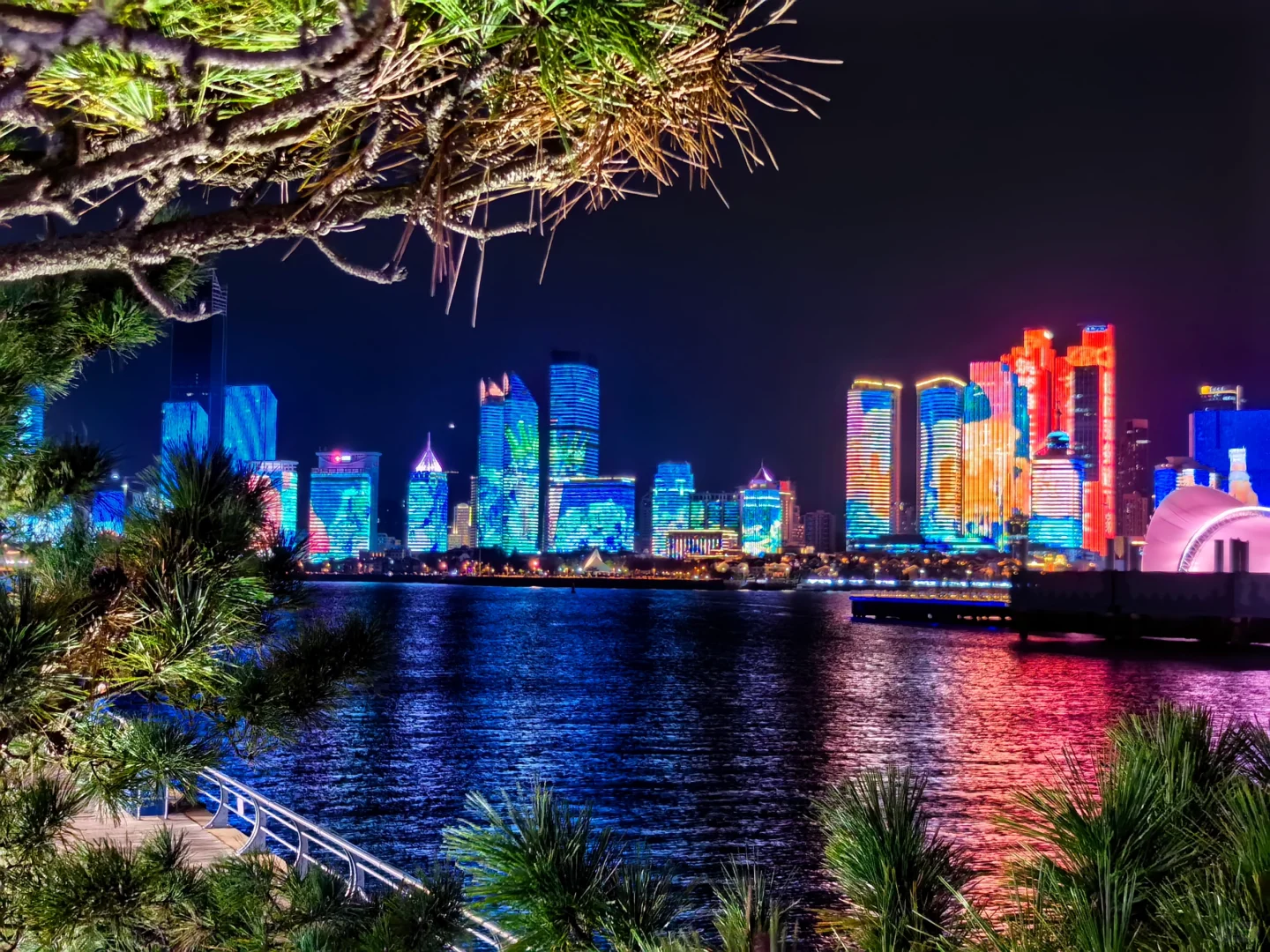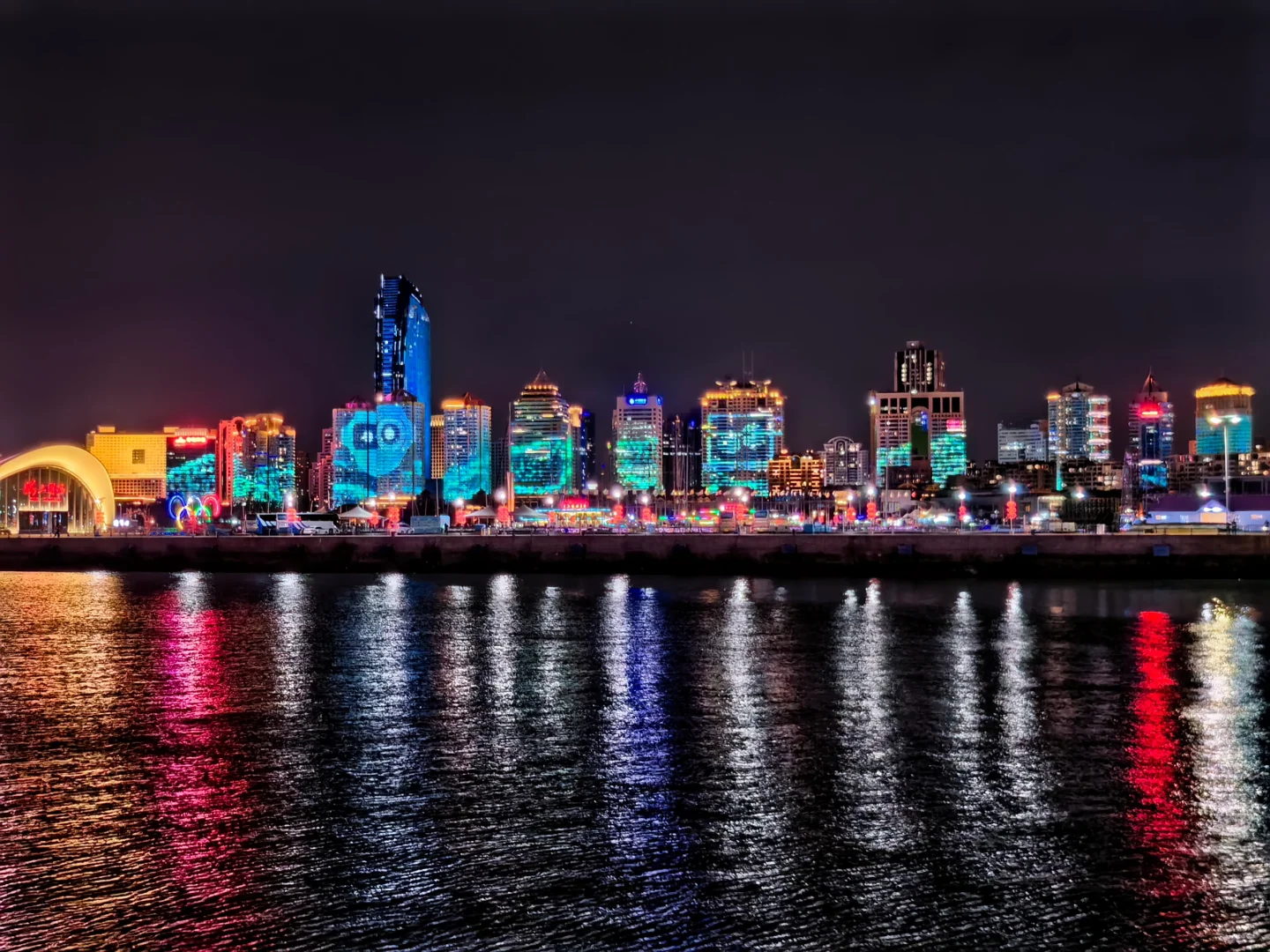 11.13青岛街头实况 夜色璀璨视觉盛宴