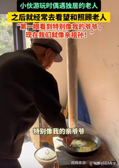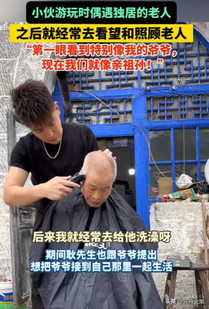 看哭了!小伙1年前到山西游玩,偶遇一独居窑洞的86岁老人!小伙觉得有缘,便定期开车5小时到山西照顾他!这次一去,爷爷哽咽着说:(咱们非亲非故),你却跑前跑后伺候我...不料当小伙说出原因后,感动了无数网友:相互救赎的两个人,是双方的福报! 小伙凯哥是河北衡水人,做着自媒体工作,经常到处游玩,尤其是喜欢去大山深处,感受大自然的同时,发现有孤寡老人就尽自己所能,行行善事,记录生活,发布在网络上面。 从他的账号里面不难看出,凯哥在各种孤僻山庄中,见证了无数的人间疾苦,村子里破败不堪,没有年轻人的身影,有的只有孤寡老人互相陪伴。 每次看到这样的一幕,他都会去买些东西,提供给老人一些帮助。 一次他来到了陕西的一个大山里,漫无目的的到处游玩,不知不觉就走到了大山的深处,就在这个时候有了新发现,他看到大山悬崖上有着一户人家。 抱着好奇的心态前去查看,结果看到了一个瘦弱的老人,在悬崖上耕地,这一幕令凯哥有些心酸,他上去询问老人家庭情况,结果发现老人因为年纪大了,耳朵不好使,必须要说话放开分贝才能够隐约听得到,俩人对话有些阻碍。 凯哥问老人在种什么,但老人却一无所知,反而热情的招待着凯哥来到了自己的家中,要给开个做顿饭吃。 奈何自己一个人生活贫困,家中并没有像样的饭菜,有的只是干干巴巴的方便面,害怕开个想起,小心翼翼的询问凯哥:“别的饭我做不了,吃方便面不?” 凯哥有些惊讶,难道老人一日三餐只有方便面可吃吗,跟着老人走进屋子里发现,床上干净整洁,放着两包方便面,做饭的地方也放着成箱的方便面,除了方便面还真就没有一些健康的食物。 后来俩人来到院子里面交谈,了解到老人一个人生活在这个村子里面,自己一辈子也没有去个媳妇,打了一辈子光棍无儿无女。 但他依旧在自食其力的好好生活,如今年纪大了就靠着国家的五保补贴生活,凯哥直接泪目,看着老人给自己做饭的身影,一瞬间就想到了自己去世多年的爷爷。 原来凯哥从小跟着爷爷一起生活,自己好不容易有能力可以回报爷爷,却很早的失去了爷爷,那一瞬间他下定决心,每个月抽出之间来照看老人,把老人当做亲爷爷照看,同时他说到做到。 工作不忙的时候一个月来个五六次,给爷爷带各种食物以及生活用品,帮爷爷洗澡、理发、洗衣服打理家务,将爷爷收拾的干净精神,还在爷爷家中添置各种家具家电。 他对爷爷的爱一直持续到了现在,爷爷也把他当成了亲孙子看待,一次爷爷满含泪水的感谢凯哥:“跑前跑后伺候我.....” 只因老人也是凯哥心灵上的一种救赎,而凯哥为他养老善终,也是对老人的一种救赎,网友们被他们不是亲生祖孙,胜似亲生祖孙的感情所感动,纷纷留言:“优秀的男孩,你会有福报”、“相互救赎的两个人” 老吾老以及人之老,幼吾幼以及人之幼,这是中华民族的传统美德。希望我们每个人都能够传承和发扬这种美德,让爱充满人间,让社会更加和谐美好。 来源:AHTV第一时间、凯哥在路上