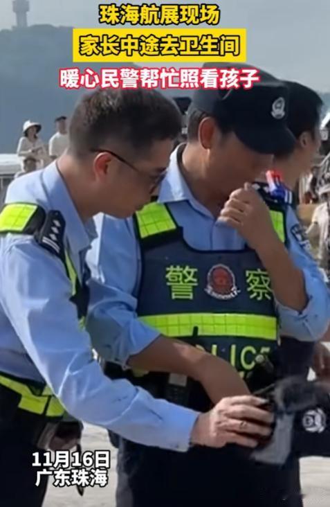 妥妥的人生巅峰!珠海航展,爸爸着急上厕所,儿子却还在熟睡中,他无奈找来民警帮忙看娃,然而,网友看到民警的警衔傻眼了,竟然是两位一级警督!网友:只有我们大中国才能看到这样的画面! 11月12日,万众瞩目的第十五届中国国际航空航天博览会在风光旖旎的广东珠海盛大启幕,一整个科幻片照进现实,将海陆空三维一体的动态演习表现的淋漓尽致。 你会发现很多不可思议的军事新产物,又会拐弯的枪,还有连着充电宝充电的枪,这也只不过是冰山一角,最重要的是,里面的无人系统,无人机飞走还会自己飞回来,无人航母只需要一个指令就能够自行发送蜂群无人机,还有南天门计划的主力战舰白帝空天概念战机,水陆两栖可以喷火的机器狼,歼-35飞着飞着就隐形了...... 不少国人为了目睹这震撼的一幕,亲自不远而来,来到珠海航展。 在航展之中除了欣赏到了我国震撼的军工以外,更是看到了温馨的一幕。 只见一男子带着自己的儿子来到航展,希望能够让儿子从小就对祖国足够了解,认识到祖国的强大,培养他的爱国情怀。 但是小孩子的精力有限,随着一场又一场演习下来,儿子已经进入梦乡,还好男子带了个椅子,便将儿子放在椅子上让其安稳睡觉,自己则继续观看,不曾想就在这个时候尿意来袭,他急着要上厕所,可是把孩子一个人放在那又不安全,刚好看到了周边的警察叔叔,好像警察有一种魔力,仅看一眼就有满满的安全感,于是就让两个警察帮忙看下孩子,自己则解决急事。 警察一口答应,在男子走后,俩人可谓是物尽其用,硬核围在小孩的旁边,一个人用自己的身子遮挡太阳,慈祥的看着孩子睡熟的脸庞,一个人摘下帽子,给孩子扇风,生怕热着孩子,这温馨的一幕被网友看到,拍了下来发布在了网络上,网友们感觉得温情的同时,也羡慕小男孩,这不妥妥的人生巅峰。 还有网友调侃;“这两位警察,一看就是个好父亲” “警察叔叔:你不要醒来啊,醒了哭了哄不住啊!” 来源:蓬莱观察