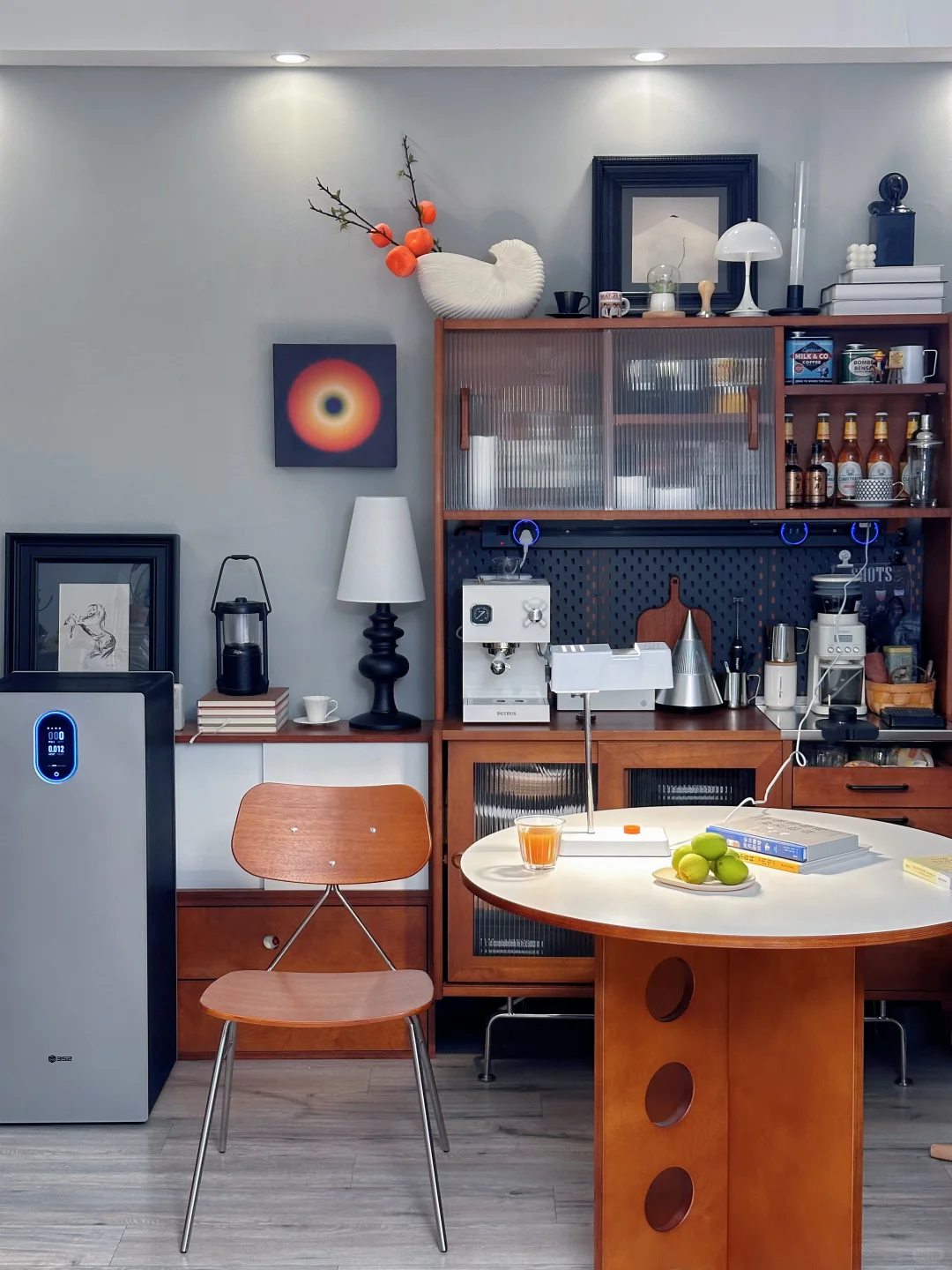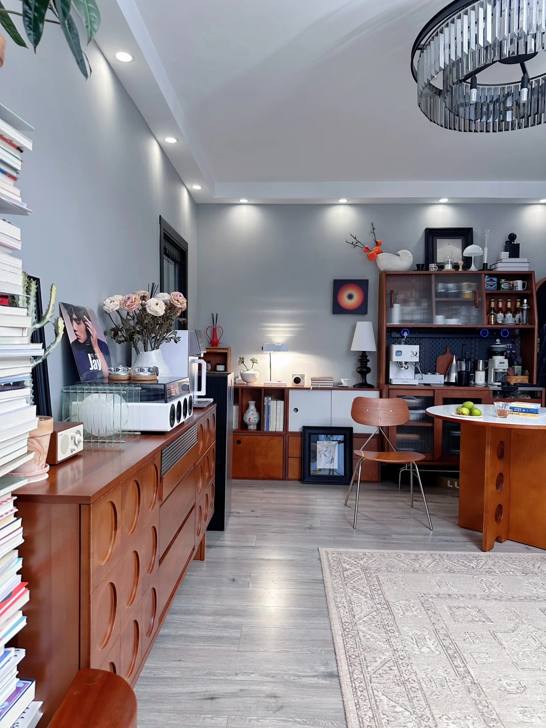 坐标北京朝阳区, 60平一室一厅, 自己装修设计, 独居一人一猫, 落地窗+双阳台, 半开放厨房, 中高层视野景观很赞, 虽然北漂当牛马很累, 但下班回到这样的家, “幸福”也不过如此吧! 有点满足了!